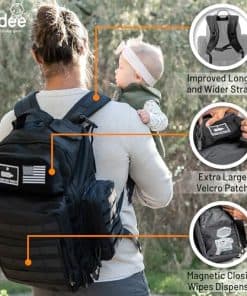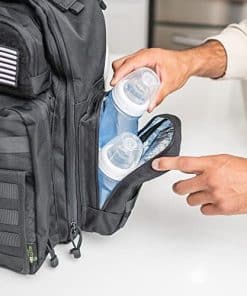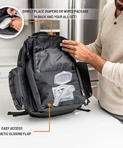 Mochila para pañales de papá – Estilo Molle Mochila militar para pañales hecha de resistente poliéster impermeable 900D con correas más anchas y extralargas, bolsillo para pañales sucios, dispensador de toallitas para bebé y bolsillos aislados para biberones. La mochila para pañales de papá que está lista para casi todo: No importa a lo que te enfrentes, desde salivazos y regurgitaciones hasta ese característico pañal sucio, estarás equipado para manejarlo con esta mochila para pañales de papá para hombres y mujeres; Con 18 x 16 x 8, proporciona todo lo que necesitarás en un apuro; Así que adelante, tenemos tu espalda. Construido más resistente para ir más allá: A diferencia de las mochilas para pañales más endebles, esta está hecha de poliéster impermeable de 900 deniers, tejido más denso y resistente para resistir desgarros y soportar el desgaste constante; Resultado: Contarás con esta mochila para pañales de bebé mucho después de que tus hijos hayan superado sus pañales. Mantén las toallitas húmedas al alcance de tu mano: Nunca sabes cuándo tendrás que limpiar un desastre; Por eso, esta versátil Mochila para Pañales para Papá y Mamá incluye nuestro exclusivo dispensador de toallitas para bebé con tapa magnética; Simplemente toma una toallita según la necesites; La siguiente toallita saldrá prontamente para un acceso conveniente. Encontrarás innumerables formas de utilizar esta mochila para pañales extra grande: Con su práctico bolsillo con cremallera para pañales usados, bolsillos laterales más amplios para biberones y cambiador plegable, nuestra mochila para pañales para hombres y mujeres te llevará a recados, salidas, picnics, viajes a la playa, compras, cenar, viajes y más; Incluso puedes usarla como una mochila de senderismo regular. Garantizado para hacer el trabajo: Como padres nosotros mismos, sabemos que los bebés pueden ser un caos, y también pueden ser suministros para bebés; Por eso nos propusimos crear una mejor mochila para bebé, con correas acolchadas más largas y anchas, además de espacio para todo tu equipo de papá bebé; Si no te gusta, devuélvelo para un reembolso completo; Además, si alguna parte se rompe, la reemplazaremos