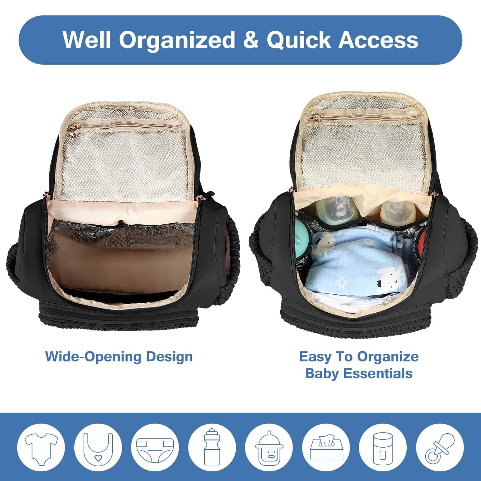 4. Resistente y Moderna Las mochilas para pañales están hechas de tela resistente al agua y a las rasgaduras, y cuentan con un diseño acolchado que combina con cualquier atuendo. El diseño de apertura amplia y cierre de cremallera bidireccional hace que sea fácil de acceder, abrir o cerrar la mochila.