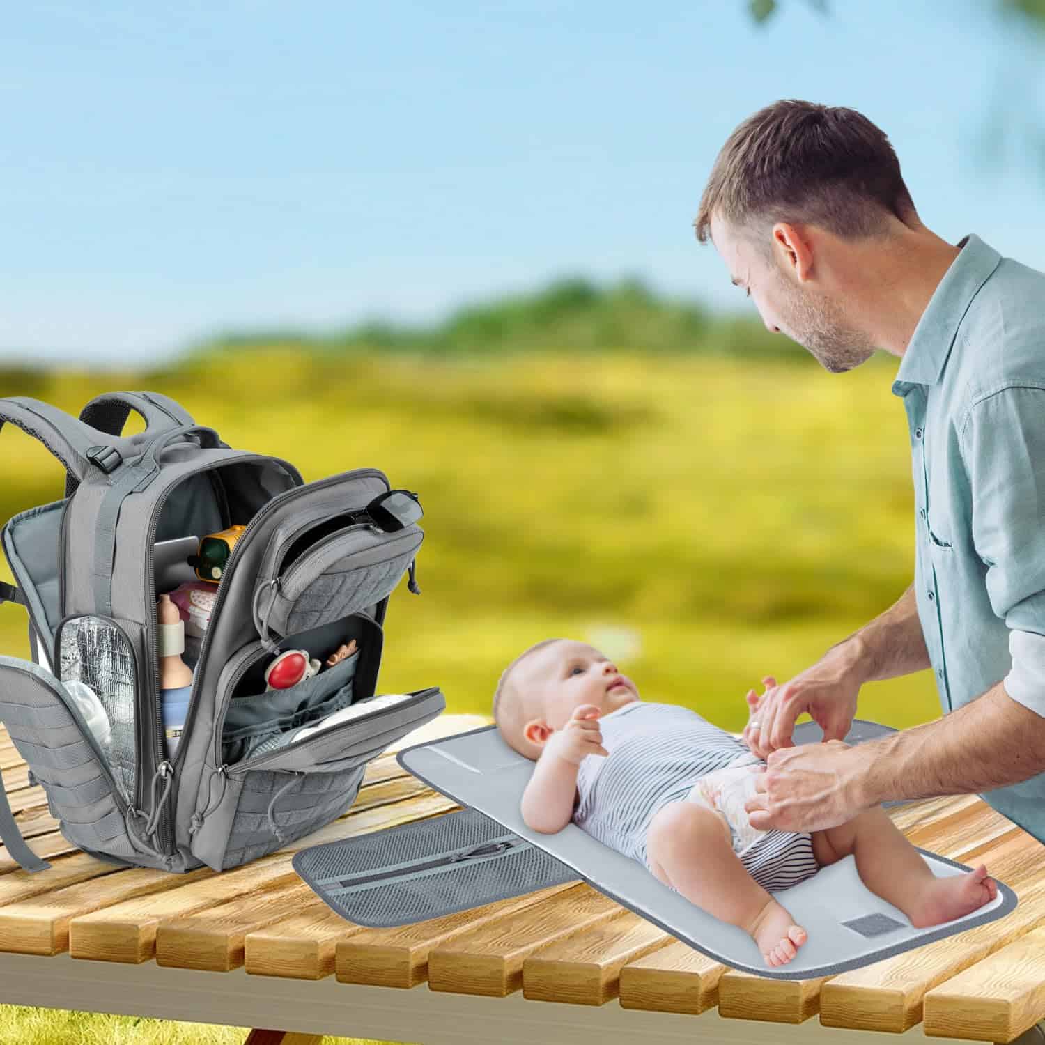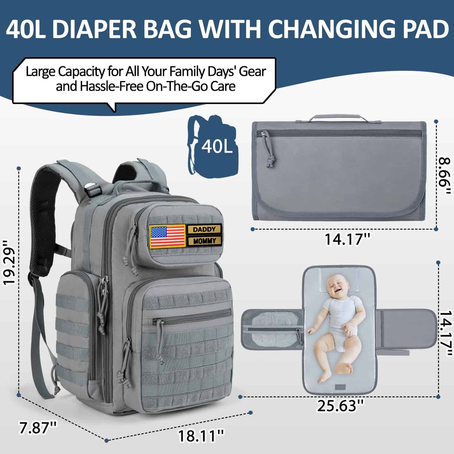 Mochila Para Pañales Militar MIRACOL: Bolso Aprobado por Papá con Bolsillos Aislados y Cambiador Plegable – Elementos Esenciales Ligeros para Excursionismo Camping y Aventuras al Aire Libre. Nuestra Mochila Para Pañales Militar es una mochila versátil e aislada diseñada para resolver el dilema del transporte para padres. Con un amplio espacio y compartimentos bien pensados, satisface las necesidades de las familias modernas, manteniendo los artículos esenciales del bebé organizados y al alcance. Especialmente diseñado para hombres, nuestro Bolso para Pañales de Estilo Militar es la mejor opción para padres que llevan estilos de vida activos. Su atractivo robusto y características funcionales lo convierten en una elección ideal para padres que buscan un bolso para pañales que coincida con su espíritu al aire libre. Perfecto para excursionismo, viajar, acampar y salidas cotidianas, nuestra Mochila Para Pañales está construida para diversas ocasiones. Su resistente construcción y características aisladas garantizan que esté listo para lo que sea que traiga el día, tanto en interiores como en exteriores. El práctico cambiador que viene con nuestra Mochila Para Pañales hace que los cambios de pañal durante las salidas sean pan comido. Con múltiples bolsillos para organización, está diseñado para mantener los artículos del bebé limpios, secos y fácilmente accesibles. Una excelente elección para un regalo de baby shower, nuestro Día de Pañales de Ejército es tanto elegante como práctico. Ofrece a los nuevos padres una forma confiable y de moda de llevar todos los artículos esenciales para bebé, convirtiéndolo en un regalo considerado y utilizable para la llegada del pequeño.