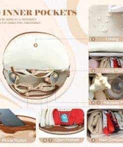 Diseño de Gran Capacidad de la Bolsa de Pañales Tote Esta mochila para pañales de mamá tiene mucho espacio para almacenar sus elementos esenciales y los de su bebé de manera ordenada. 7 bolsillos exteriores: 1 bolsillo trasero con cremallera para teléfonos, 3 bolsillos con cremallera y 3 bolsillos abiertos para organizar su billetera, toallitas, llaves, desinfectante de manos, etc. 9 bolsillos interiores: 4 bolsillos abiertos, 2 bolsillos con cremallera, 2 grandes bolsillos aislados para botellas y alimentos. Un compartimento principal de gran capacidad puede contener los elementos esenciales para bebés de 2 niños, como pañales, ropa y juguetes. Bolsas de bebé multifunción.