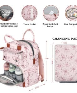 Mochila para pañales para niña con estampado de flores especial, rosa y elegante, práctica y con estilo, incluye toda la funcionalidad de una bolsa de pañales. La apertura extra ancha y las cremalleras de doble deslizamiento permiten un acceso rápido. La bolsa para bebé cuenta con materiales de alta calidad, duraderos, incluyendo tela resistente al agua con tiradores de cuero, diseñada para niñas. La mochila para bebé es ligera, resistente a rajas y con cremalleras suaves. Hecha de tela de poliéster Oxford más gruesa (más resistente que la bolsa de bebé de poliéster liso), forro resistente a derrames y fácil de limpiar, costuras reforzadas en el asa y las correas para evitar roturas. Esta mochila para pañales es ligera pero resistente y resistente a salpicaduras. Esta mochila para pañales se puede llevar, llevar en la mano o colgar en un cochecito. La correa para el hombro de la mochila es ergonómicamente acolchada para ofrecer un transporte ligero. El asa superior de fácil agarre brinda comodidad para llevarla en movimiento. La correa para equipajes en la parte trasera se desliza fácilmente sobre las asas del equipaje de mano para un viaje seguro. Además, el diseño práctico y elegante hace que esta mochila para pañales sea perfecta para viajar con sus hijos. Nuestra mochila para pañales grande con diseño de estampado floral y estilo moderno, puede actuar como una mochila para pañales o regular. Sin duda, un regalo ideal para el baby shower de los padres y un elemento esencial para el registro de su bebé. Cualquier problema de calidad dentro de un año, no dude en contactar a nuestro servicio de atención al cliente para brindarle servicio posventa, estaremos encantados de ofrecer un reembolso o reemplazo.