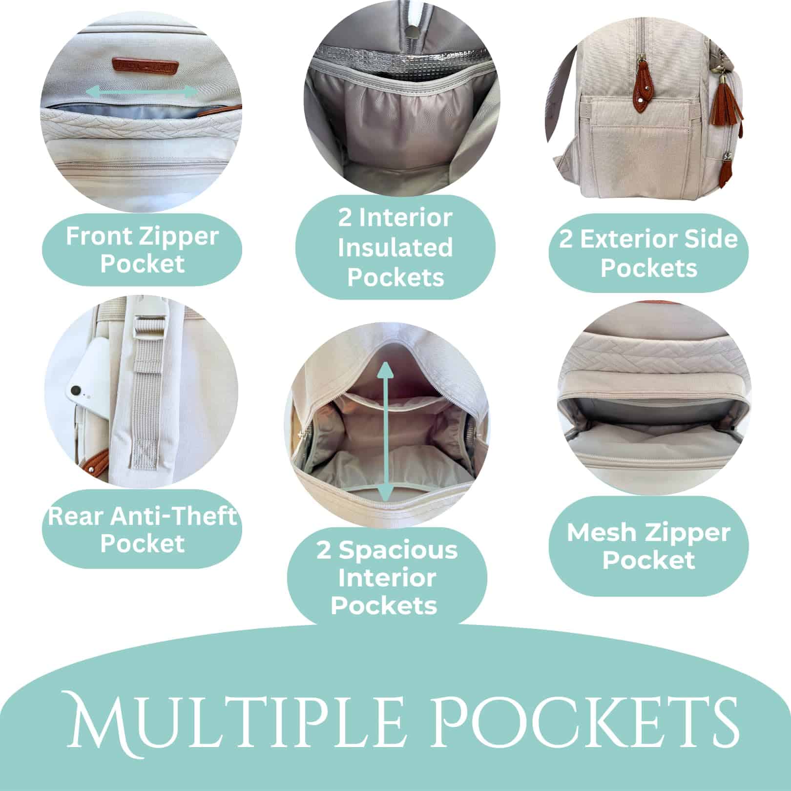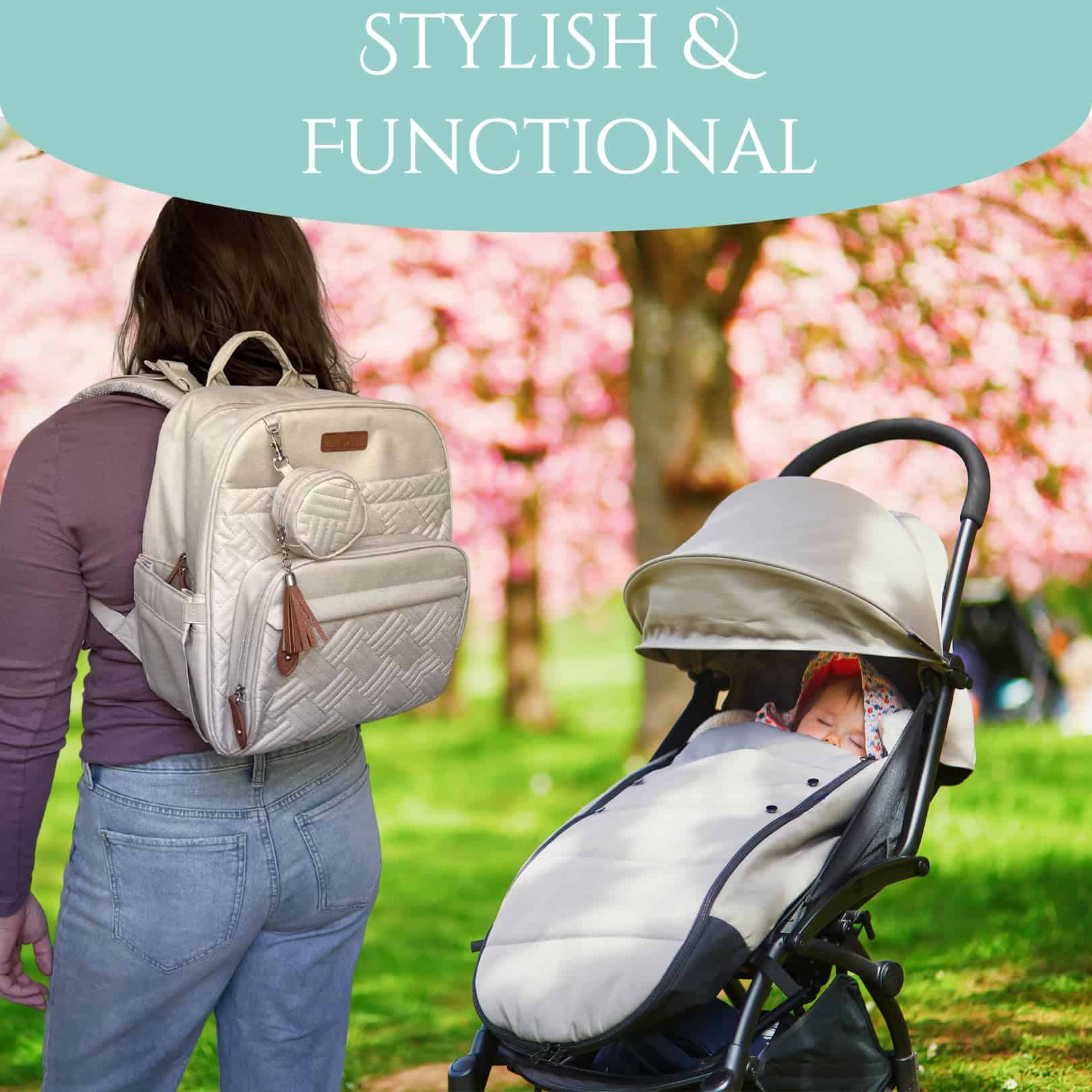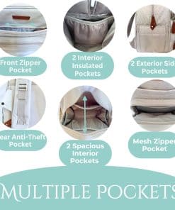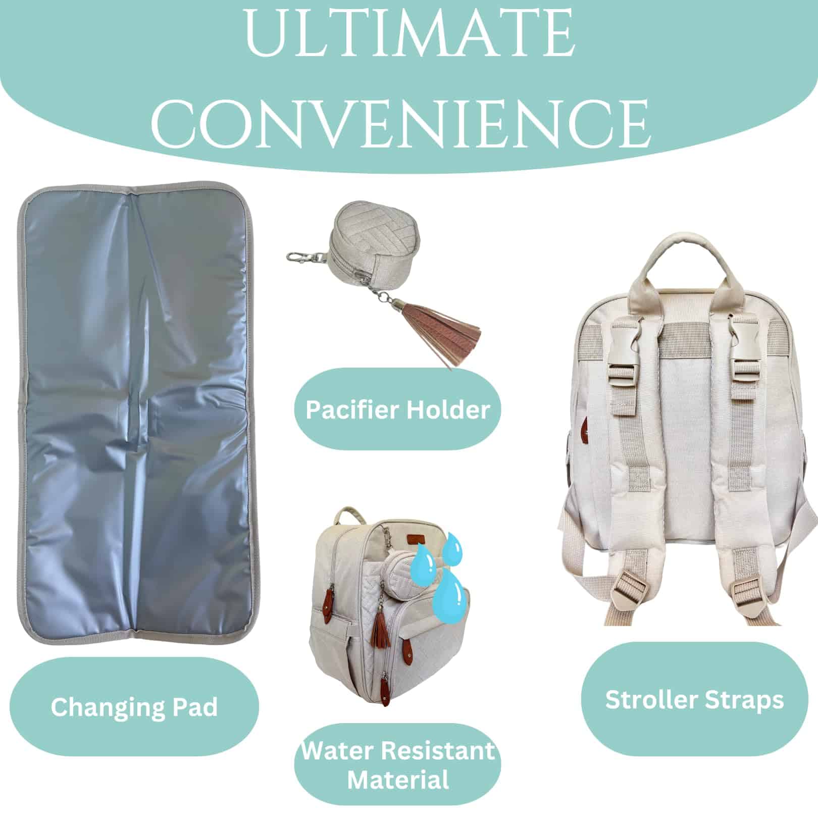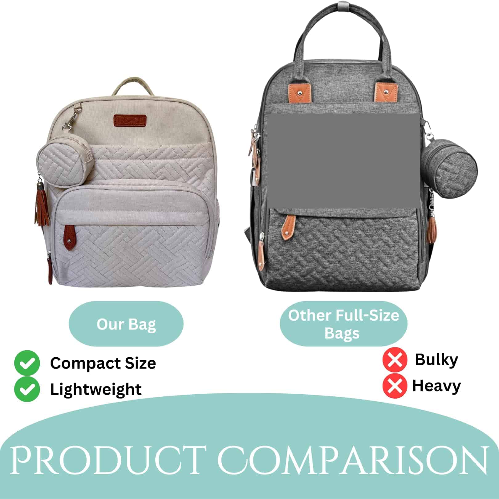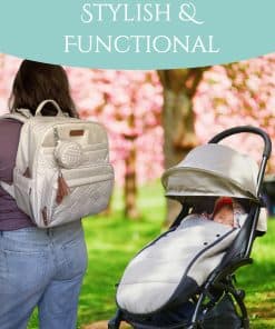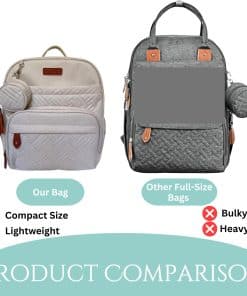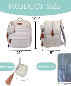 Esta mochila para pañales está hecha de tela de poliéster de alta calidad, que es duradera, resistente al agua y fácil de limpiar. Tiene múltiples bolsillos para una fácil organización de los suministros para bebés, con bolsillos aislados, un bolsillo antirrobo y más. La mochila para pañales tiene correas para los hombros cómodas con acolchado, lo que la hace fácil de llevar durante largos períodos de tiempo. Además, la bolsa está diseñada con un cambiador, lo que es conveniente para cambiar pañales cuando estás en movimiento. La bolsa es de tamaño compacto, lo que la hace fácil de guardar en un cochecito de bebé o automóvil. Es una excelente opción para padres que están haciendo recados o viajando.