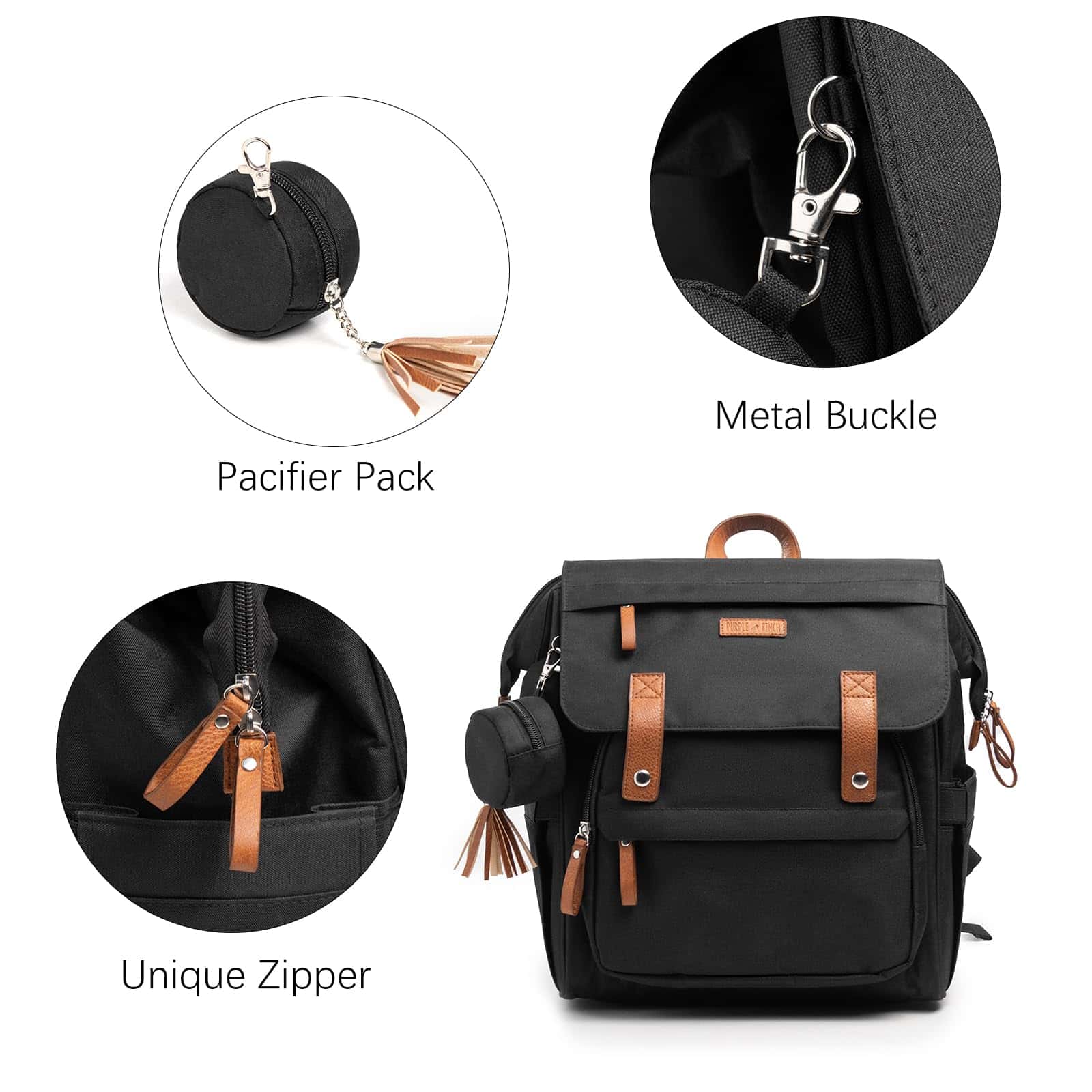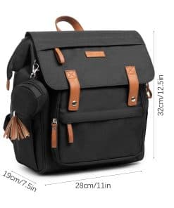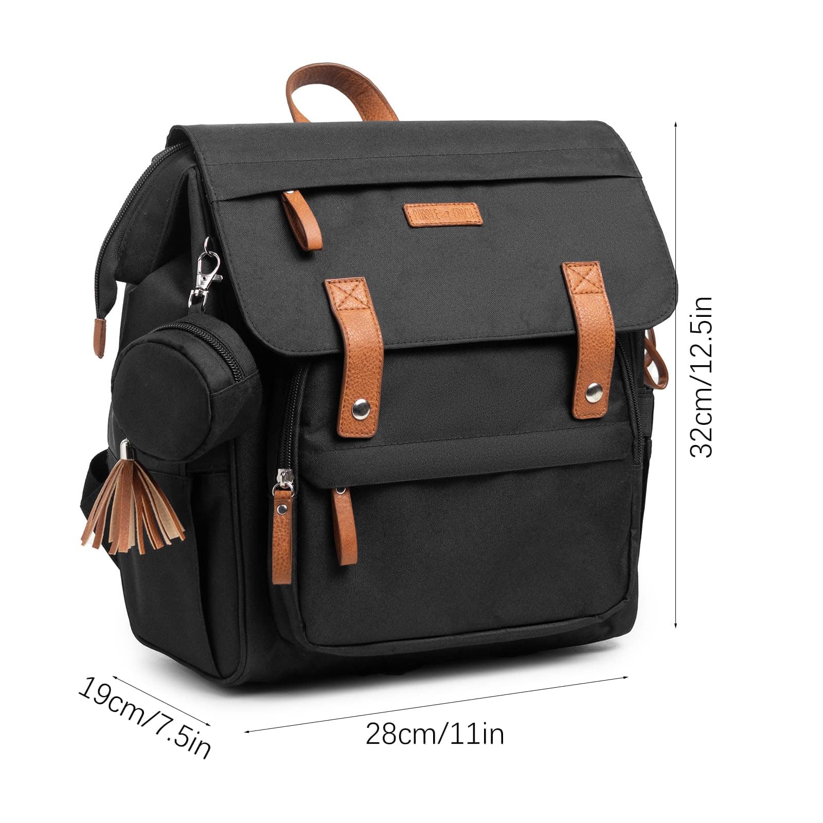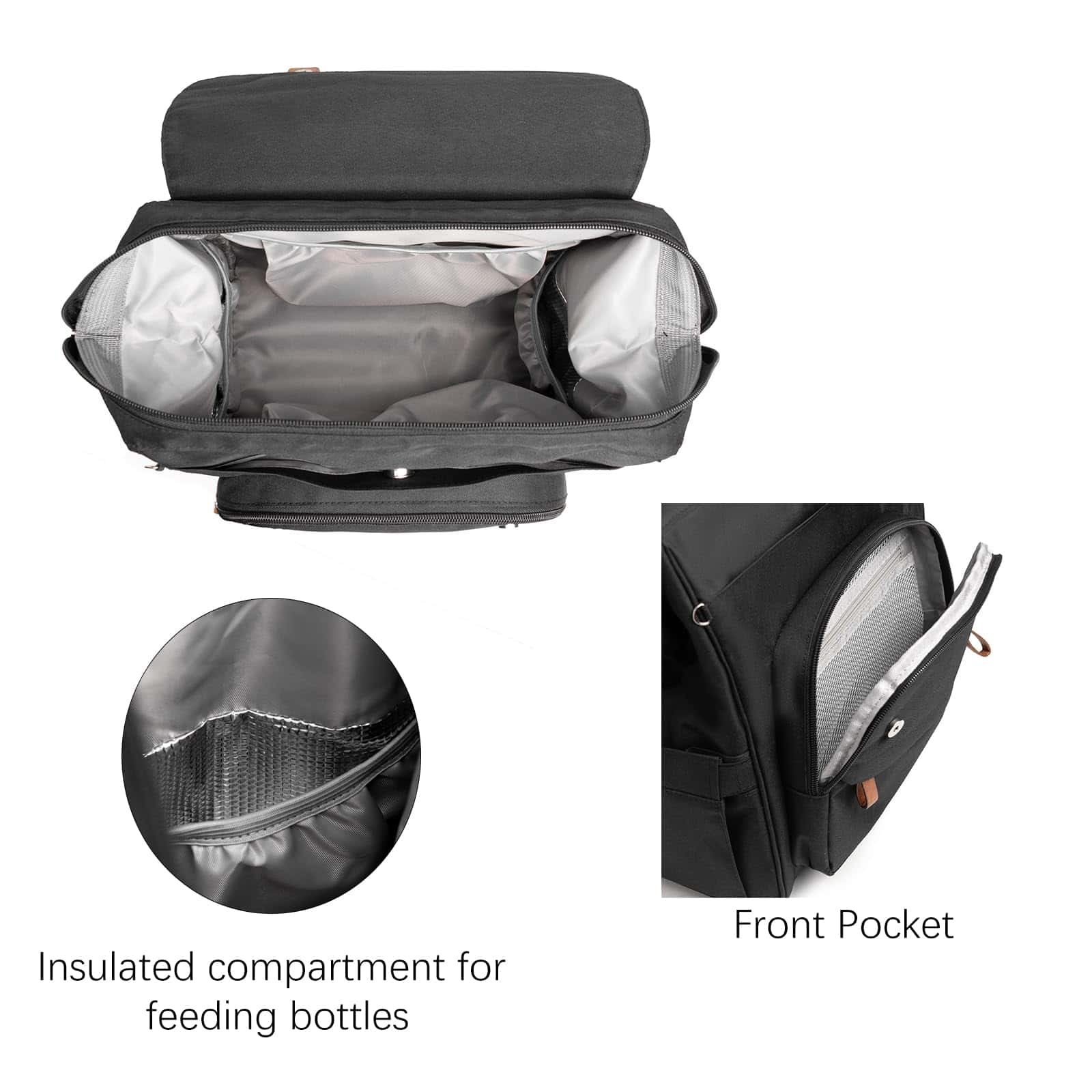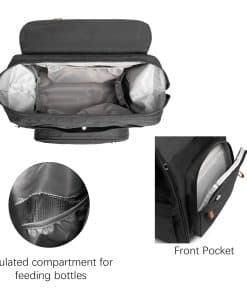 Esta mochila para pañales está hecha de tela de poliéster de alta calidad, que es duradera, resistente al agua y fácil de limpiar. Tiene múltiples bolsillos para una fácil organización de los suministros para bebés, con bolsillos aislados, un bolsillo antirrobo y más. La mochila para pañales tiene correas de hombro cómodas con acolchado, lo que la hace fácil de llevar durante largos períodos de tiempo. La bolsa también está diseñada con un cambiador, que es conveniente para cambiar pañales cuando estás en movimiento. La bolsa es compacta en tamaño, lo que facilita su almacenamiento en un cochecito o automóvil. Es una excelente opción para los padres que están haciendo recados o viajando.