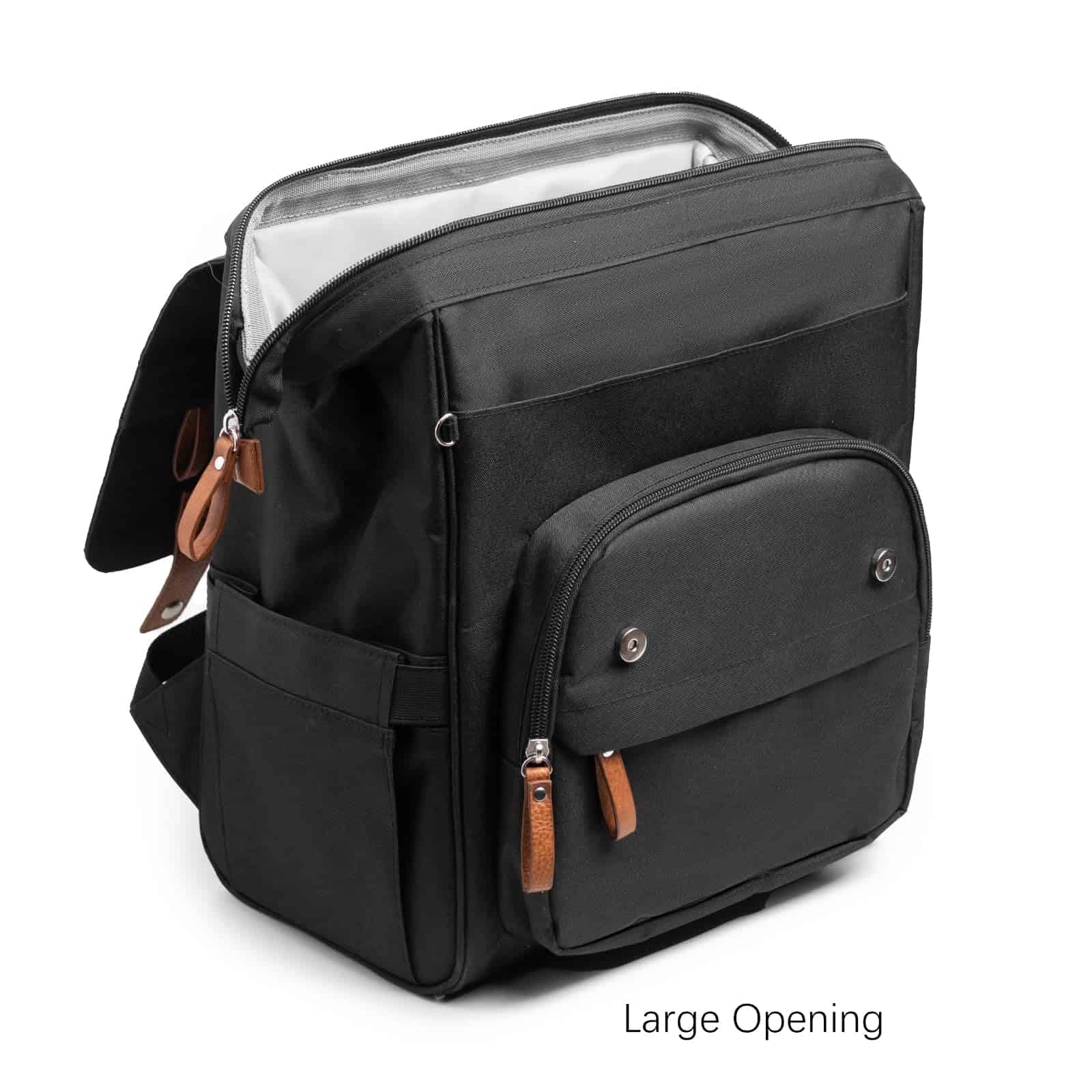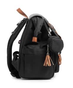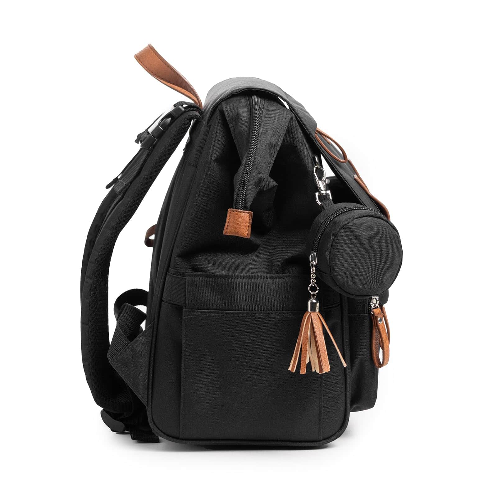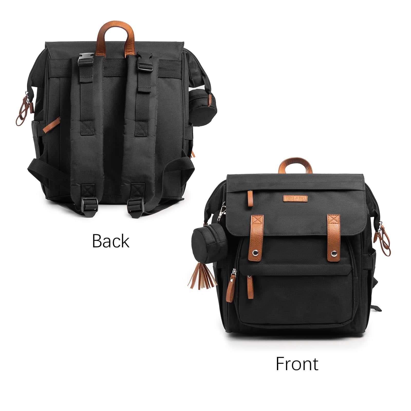 Esta mochila para pañales está hecha de tela de poliéster de alta calidad, que es duradera, resistente al agua y fácil de limpiar. Tiene múltiples bolsillos para una fácil organización de los suministros para bebés, con bolsillos aislados, un bolsillo antirrobo y más. La mochila para pañales tiene correas de hombro cómodas con acolchado, lo que la hace fácil de llevar durante largos períodos de tiempo. La bolsa también está diseñada con un cambiador, que es conveniente para cambiar pañales cuando estás en movimiento. La bolsa es compacta en tamaño, lo que facilita su almacenamiento en un cochecito o automóvil. Es una excelente opción para los padres que están haciendo recados o viajando.