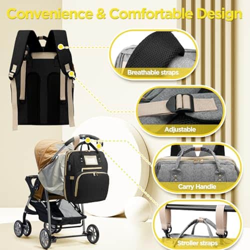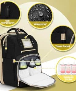 Si buscas una mochila con cremalleras sedosas, correas fáciles de llevar, fácil de limpiar y gran capacidad, no dudes en elegirnos. Obtendrás una mochila para pañales mejorada. Increíble! Hemos añadido más características amigables para ti, como tela de sombra, correa más ancha, etc. Puerto USB es un buen plus. Tamaño ideal. La mochila para pañales tiene 2 compartimentos principales y 12 bolsillos útiles. Especialmente los 3 bolsillos aislados mejorados. Está hecha de material impermeable de alta calidad. No te preocupes por mojarte en días de lluvia. La espalda ergonómica y las correas acolchadas gruesas hacen que sea cómodo de llevar durante mucho tiempo. Las correas son fácilmente ajustables, adaptándose también a marcos más anchos. Tiene fricción y no se desliza fácilmente. Perfecto para usar como bolsa de pañales, mochila de mamá, bolsa de enfermera. Diseño elegante y unisex para padres. Ideas de regalo, es imprescindible tener accesorios para recién nacidos para mamá y papá / padres / embarazo.