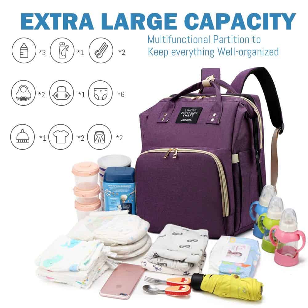 2. Almacenamiento: esta espaciosa bolsa para pañales ofrece mucho espacio para guardar todas las cosas esenciales de mamá (o papá) para su niña o niño (¡o incluso gemelos!)