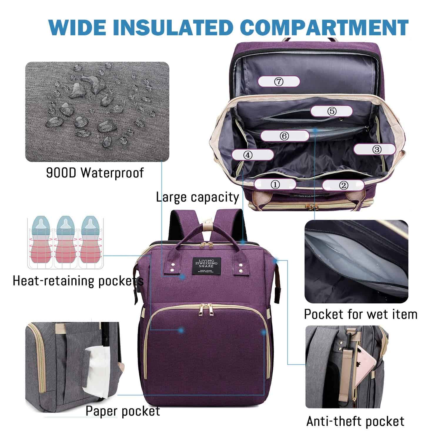 4. Duradero pero ligero: nuestra mochila para pañales está hecha de tela ligera, duradera e impermeable. Costuras que no se deshilachan y cremalleras fuertes. Costuras reforzadas en las correas para los hombros y el asa, sin romperse.