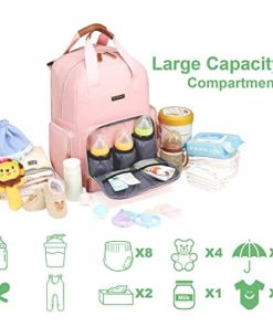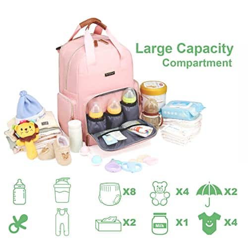 2. Gran Capacidad y Todo en 1 — Mide 15(L) x 7.5(W) x 19(H) pulgadas. Diseño todo en 1, cada bolsillo es independiente. Estos bolsillos de malla en la bolsa principal, que se destinan a almacenar una laptop. El compartimiento principal podría contener la mayoría de los elementos esenciales del bebé, para que todas las cosas del bebé estén en una sola bolsa, que es suficiente para sacar al bebé.