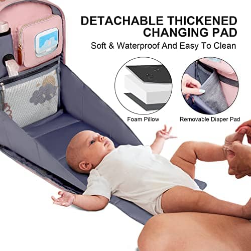 1. Diseño Único de Estación de Cambio de Pañales — Esta bolsa para bebé tiene un diseño multifuncional. Una estación de cambio de pañales desmontable está adjunta Tamaño desplegado: 22.5″ x 11″ x 9″), abriendo y desplegando la almohadilla, luego se puede cambiar el pañal al bebé, ofreciendo comodidad a los padres. La almohadilla para cambiar pañales también se puede sacar por separado incluso si no lleva toda la bolsa fuera, facilitando el cambio del pañal del bebé al aire libre. Un artículo imprescindible para los nuevos padres.