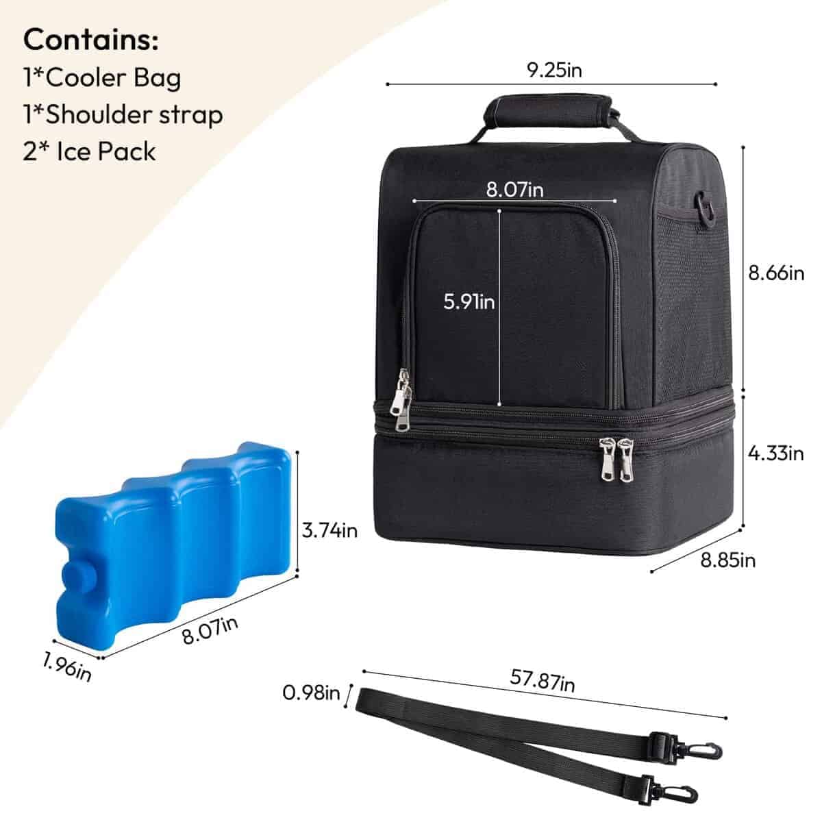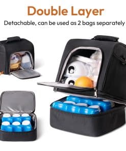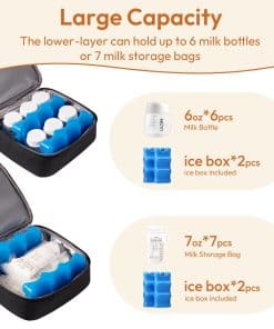 Elige la mochila para sacaleches NCVI y haz que la extracción y transporte de leche materna sea mucho más conveniente y fácil. Esta mochila está diseñada para adaptarse a una variedad de bombas de extracción de leche populares, incluidas Spectra S1, S2, Medela, Lansinoh y Elvie, con dimensiones de hasta 8.07’x5.91’x8.85′. Con un diseño de doble capa separable, esta mochila te permite mantener tu sacaleches y accesorios organizados y seguros. La capa superior se puede utilizar para guardar el sacaleches y sus accesorios, mientras que la capa inferior es perfecta para almacenar alimentos para bebés, leche materna y otros artículos que necesitan mantenerse frescos. La bolsa refrigerada tiene un tamaño generoso de 9.25″ x 8.85″ x 13″ y puede contener hasta seis botellas de 5 onzas y 7 bolsas de almacenamiento. Además de ser una bolsa para sacaleches, también se puede utilizar como una bolsa para el almuerzo, un bolso de picnic, ideal para llevar a la guardería, al trabajo o de viaje. Hecho con materiales de alta calidad, la capa exterior de la mochila está fabricada con fibra de poliéster resistente al desgaste, mientras que la capa interior está hecha de PEVA, que previene fugas y proporciona una aislación súper efectiva. La mochila viene con 2 paquetes de hielo que mantienen los alimentos y la leche materna frescos durante hasta 8 horas. Libre de BPA, seguro para ti y tu bebé. Con asas de hombros desmontables y la posibilidad de convertirla en mochila, esta bolsa para sacaleches es versátil y conveniente. También se puede conectar fácilmente a un carro de mano o un mango de equipaje para mayor comodidad. Elige la mochila para sacaleches NCVI y facilita tu vida de mamá trabajadora.