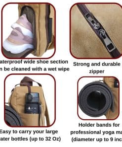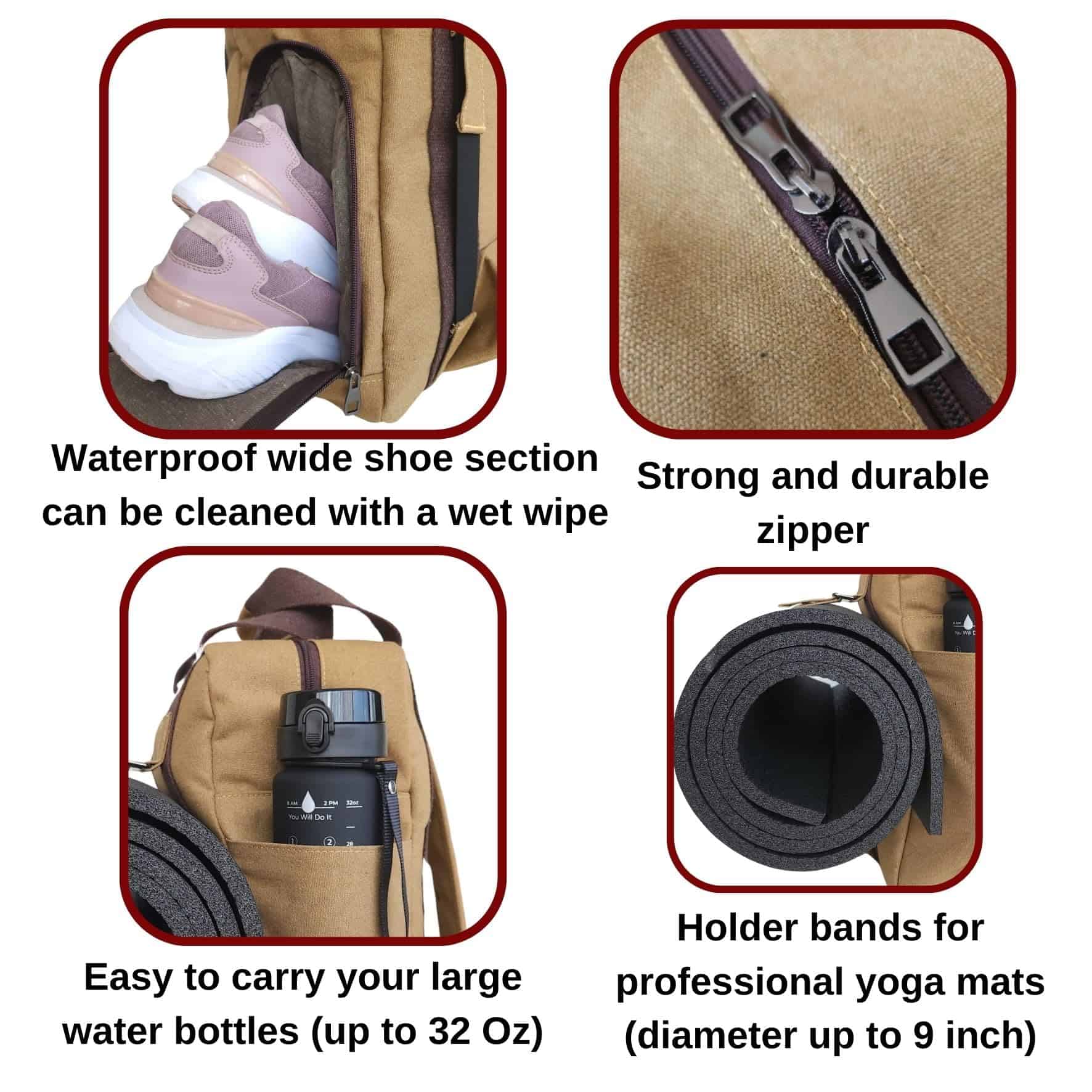 La mochila para tapete de yoga NATI LINE es perfecta para llevar todo lo que necesitas en tu día a día. Con un diseño moderno y funcional, esta bolsa de yoga cuenta con un amplio compartimento impermeable para zapatos, ideal para llevarlo a la oficina, al yoga, de viaje o al gimnasio. Además, tiene un bolsillo especial para tu botella de agua de hasta 32 onzas y un bolsillo frontal para objetos pequeños, como llaves o teléfono. El soporte para el tapete de yoga evita que se caiga y se mantenga en su lugar. La cremallera resistente y duradera asegura que tus pertenencias estén seguras en todo momento, y el compartimento impermeable para ropa mojada es perfecto para separar tus prendas húmedas del resto. ¡Haz que tu rutina sea más fácil y organizada con la mochila para tapete de yoga NATI LINE!