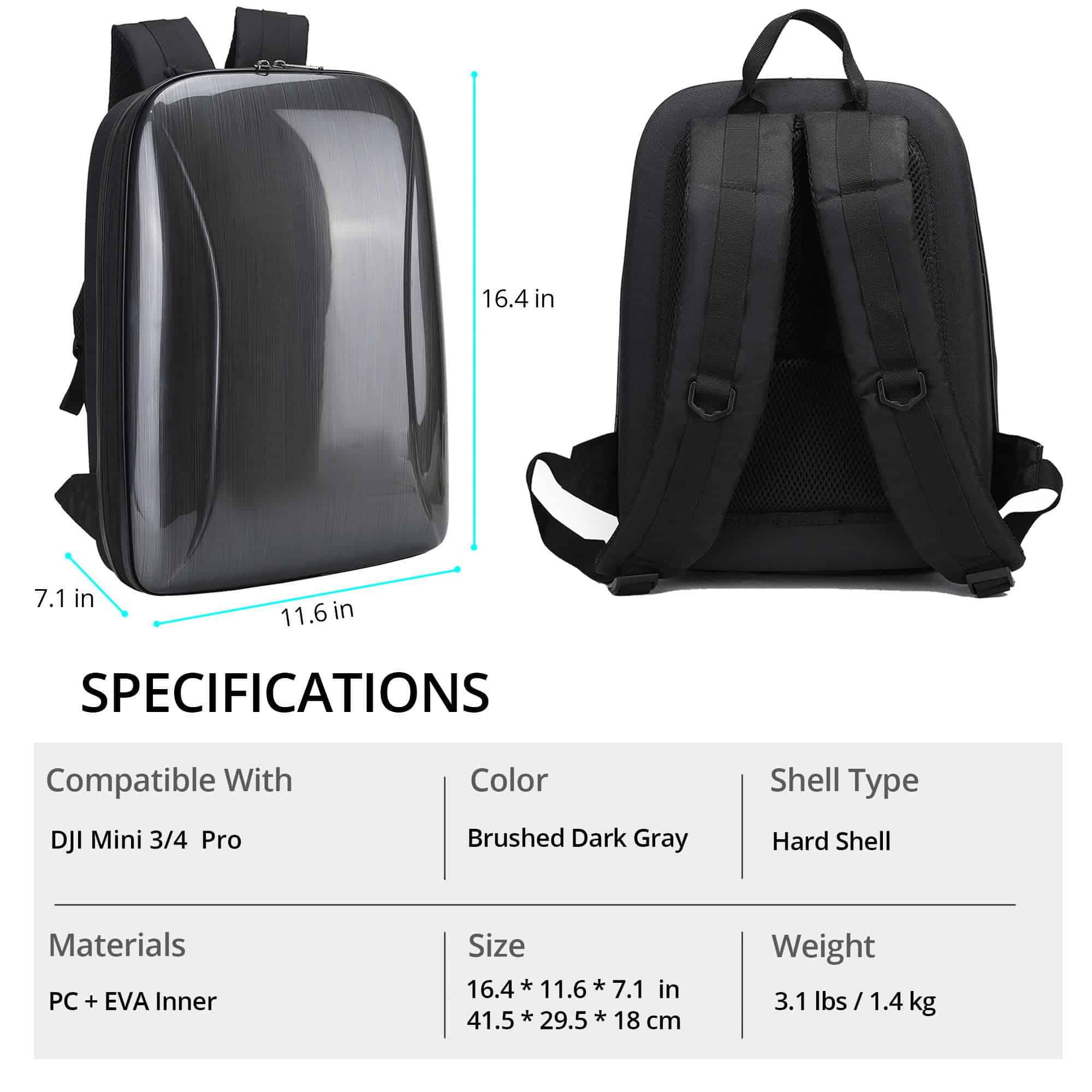 1x Mochila Hard Case para DJI Mini 3, Mini 3/4 Pro Fly More Combo / Accesorios del Control Remoto DJI (NO incluye el drone, control remoto y otros accesorios para drone)