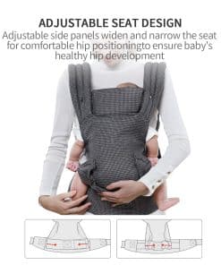 4. Certificado de cadera-saludable: Todas nuestras mochilas portabebés están certificadas como saludables para la cadera. Esta mochila portabebés está hecha de 100% algodón y cuenta con un reposacabezas incorporado, soporte de rodilla a rodilla.