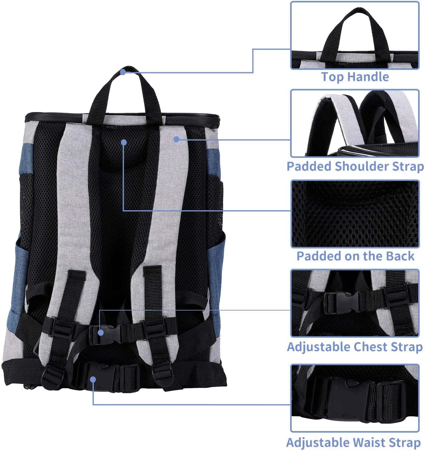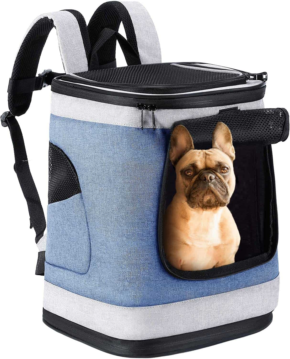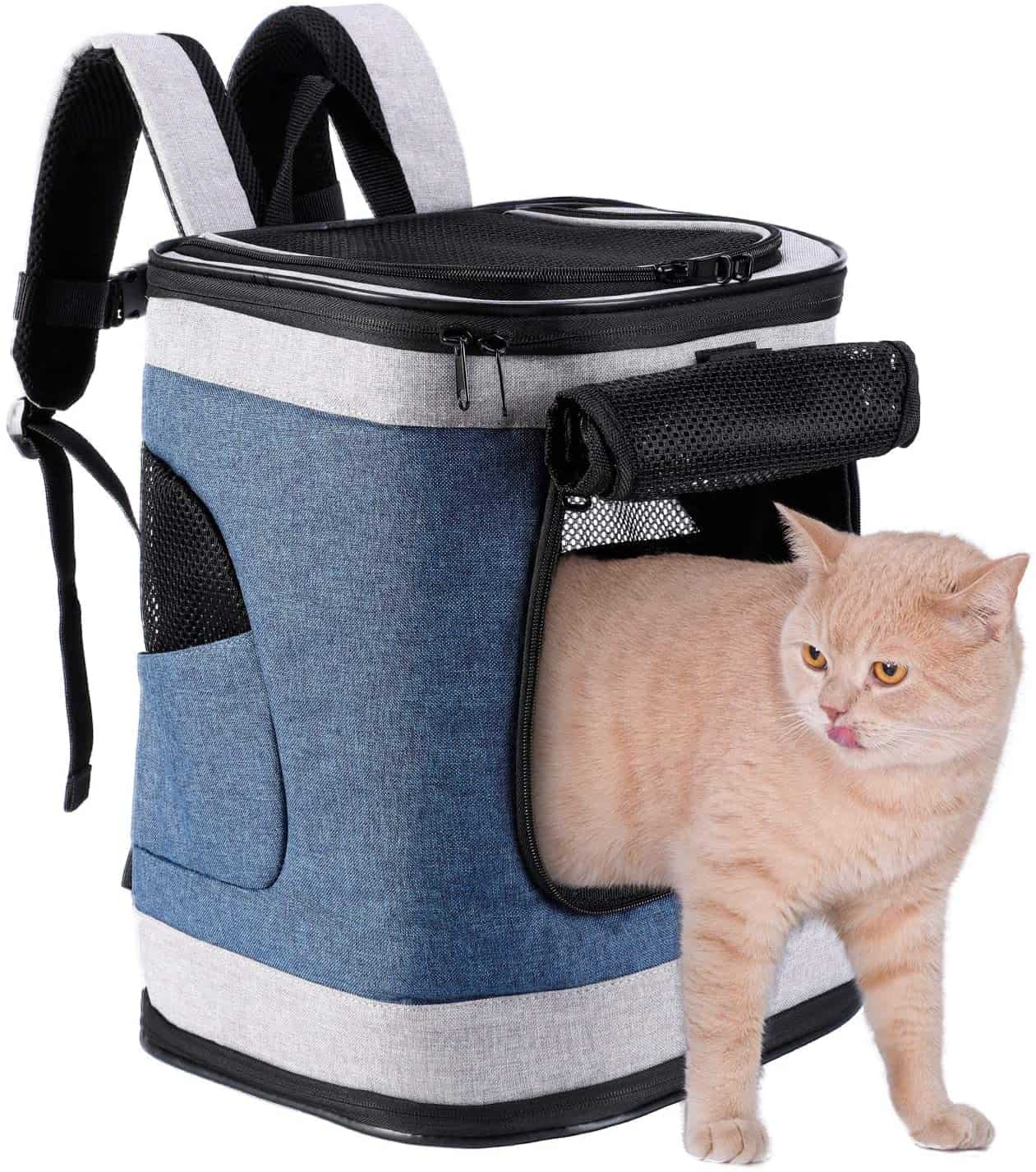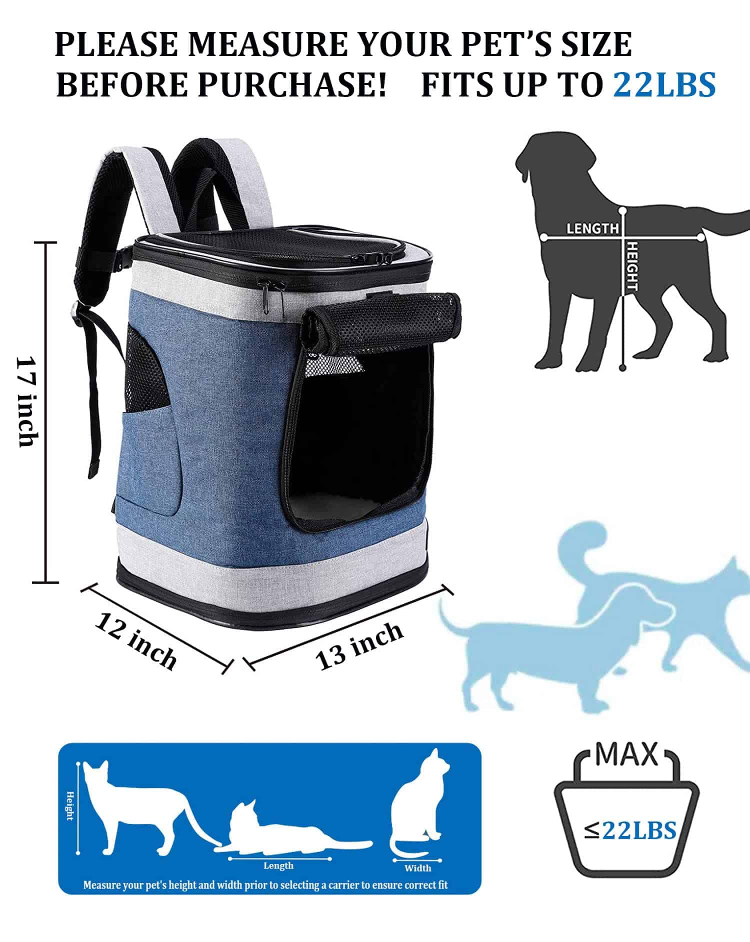 1. Tamaño: 13″L x 12″W x 17″H. Ajuste fácilmente gatos, perros pequeños y la mayoría de otras mascotas pequeñas/medianas, de hasta 22 libras. Mida la altura y el ancho de su mascota antes de seleccionar un portador para garantizar el ajuste correcto.