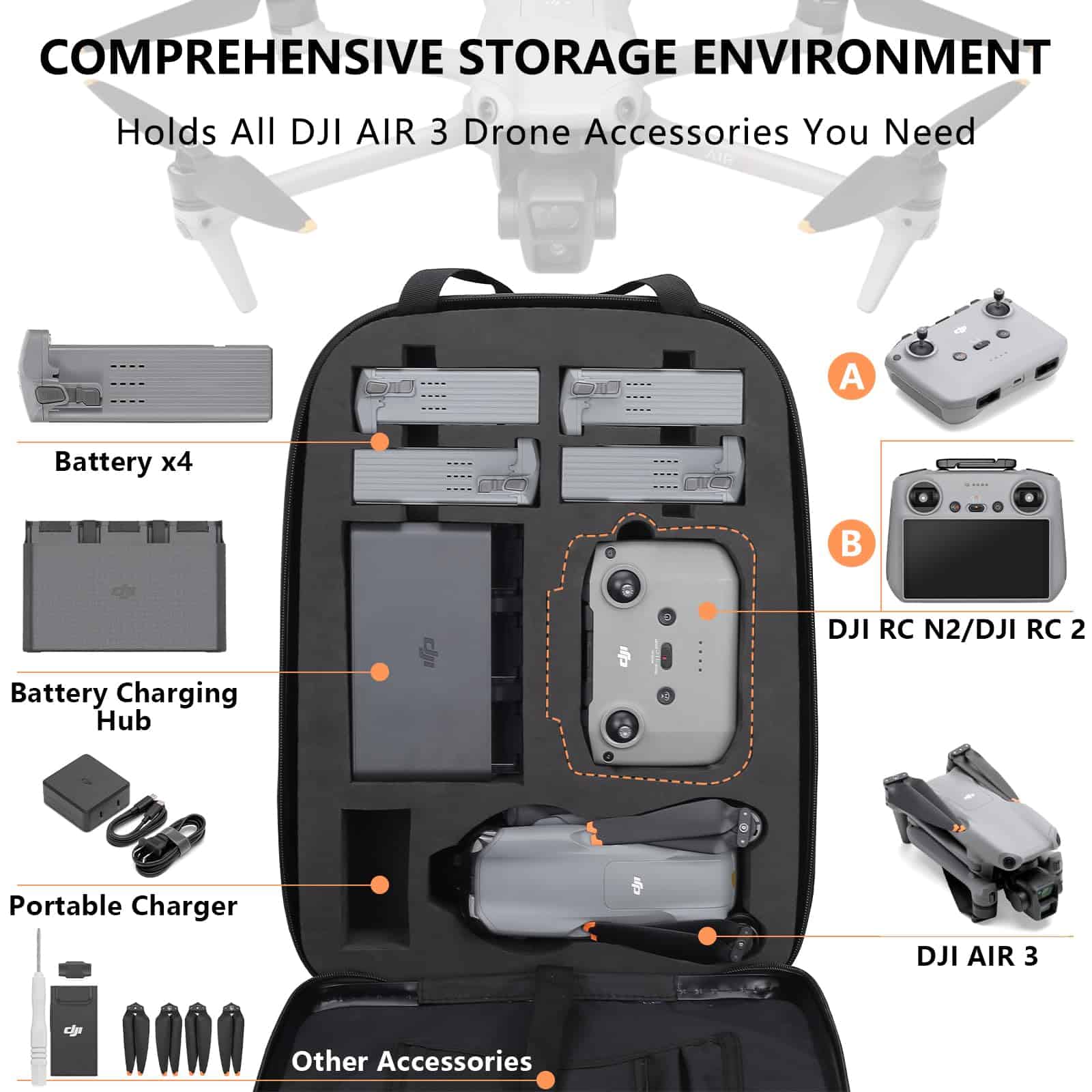 Nombre del producto: Estuche Rígido para DJI Air 3 DJI Air 3/Combo de Vuelo Neo – Mochila Cómoda a Prueba de Golpes para Accesorios de Dron DJI Air 3/Neo