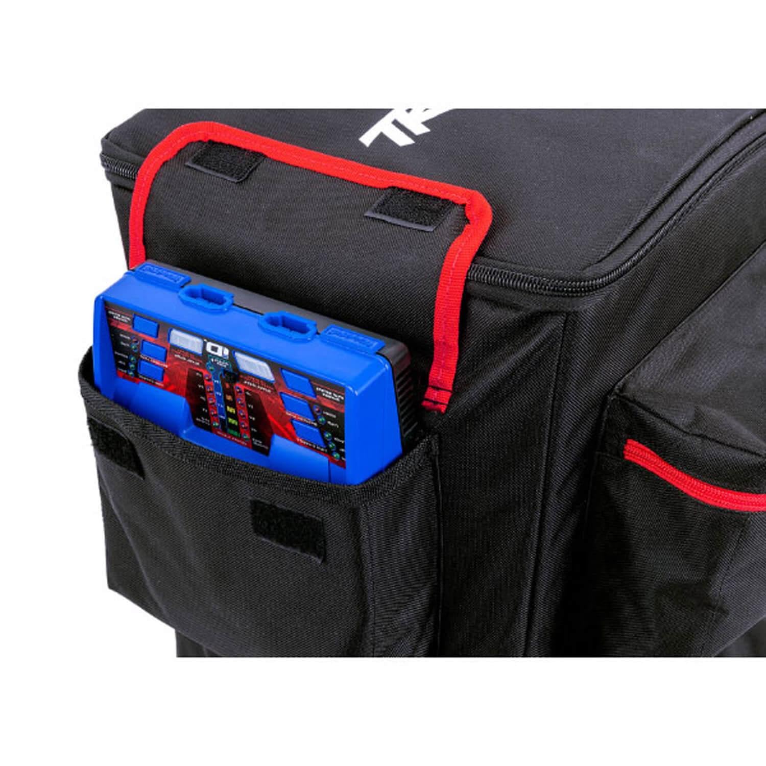 Protege tu valiosa inversión y viaja como un profesional con la mochila Traxxas RC. Basado en las bolsas de calidad profesional que nuestro equipo usa en el campo, la mochila Traxxas protege tu equipo y te lleva a tu destino con estilo. El compartimento principal acolchado es compatible con vehículos estándar de escala 1/8 y 1/10 y cuenta con bolsillos laterales de malla ventilada doble. Los compartimentos con cremallera grandes en cada extremo están subdivididos con espacio amplio para un transmisor, herramientas, baterías y otros equipos.