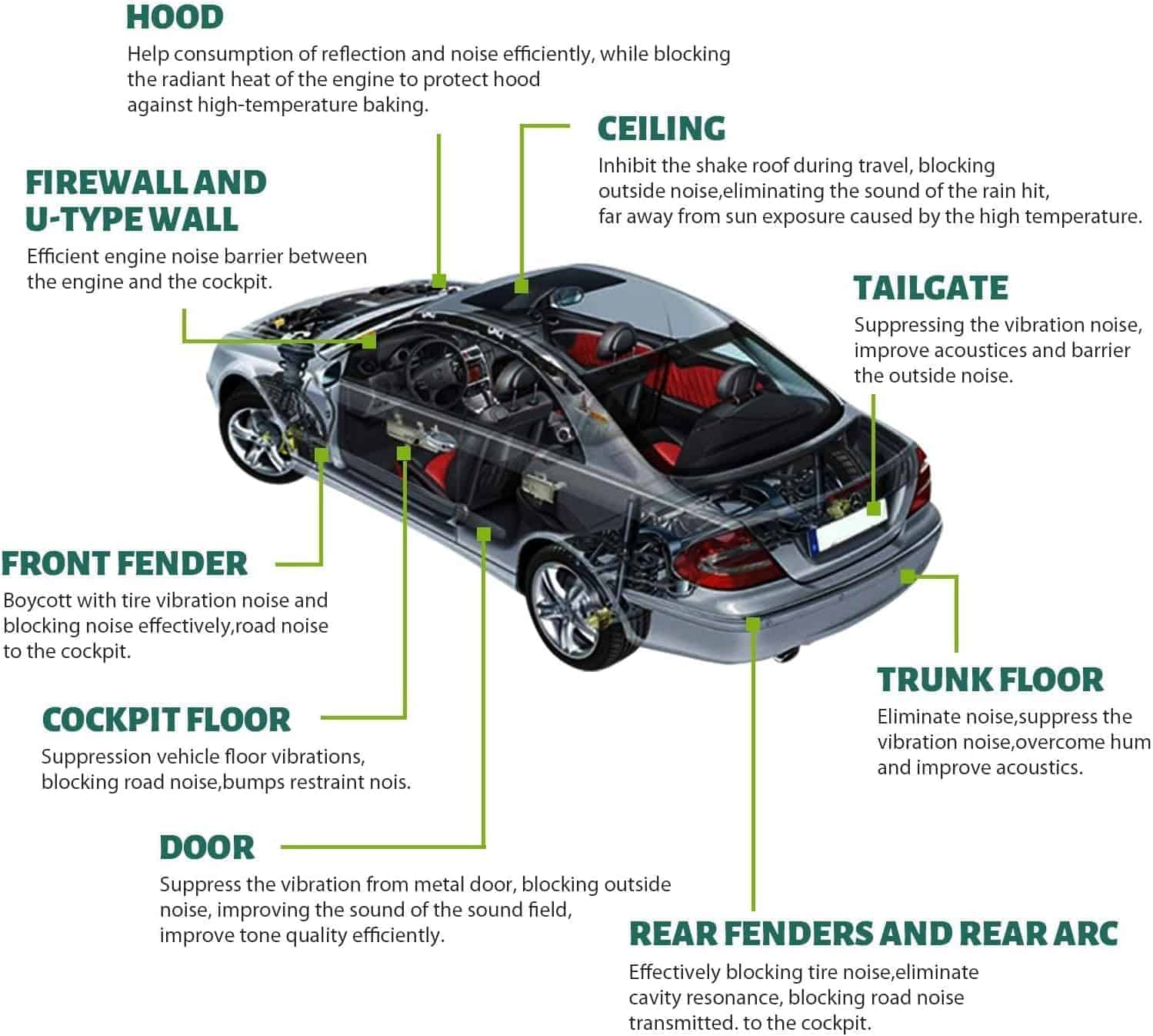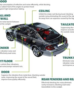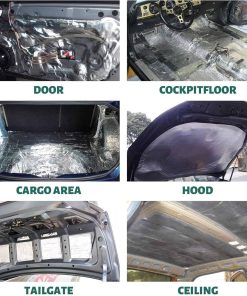 Este mat de aislamiento térmico tiene una capa adhesiva. Es un material de aislamiento muy versátil con excelentes propiedades de barrera térmica. ¡Es la mejor manera de mantener el coche fresco y silencioso! Es fácil de cortar e instalar. Este mat de insonorización tiene las mismas características y excelentes propiedades de aislamiento acústico que la espuma de goma. Absolutamente no absorbe agua y no tiene olor a diferencia de la espuma de poliuretano. Tiene un peso muy bajo, es resistente al aceite y la gasolina. Un buen aislamiento acústico te proporciona un excelente confort durante la conducción a alta velocidad. Fácil de cortar e instalar, adecuado para varios modelos de coche. Con respaldo autoadhesivo, impermeable y a prueba de polvo. También se puede utilizar en techos, capós, cortafuegos, chasis, maletero, tapa del maletero, etc. No cubra el cableado del chasis o los orificios de aire.