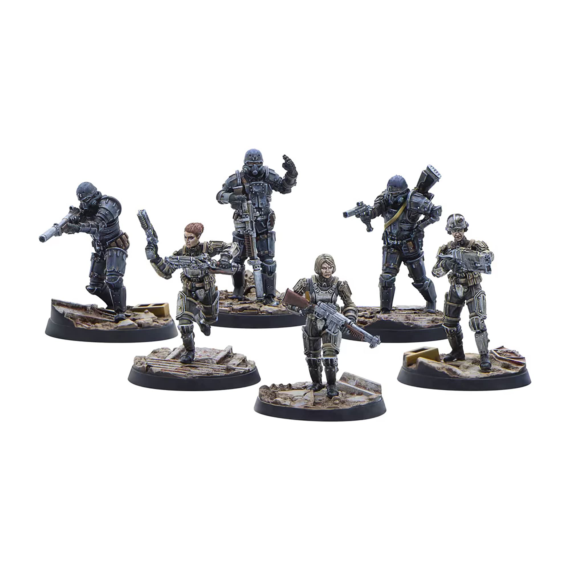Fallout Wasteland Warfare: Hermandad del Acero – Patrulla de Combate – ¡Este set es parte de la oleada CAPITAL para Fallout: Wasteland Warfare! Aunque icónico, el Caballero o Paladín con armadura de energía está lejos de ser la única herramienta en el cinturón de la Hermandad. Las patrullas de combate apoyan a sus hermanos con armadura más pesada, y los equipos de Reconocimiento aportan una formación inigualable para llevar a cabo misiones que ninguna otra rama de la Hermandad podría soñar con completar. Cuando se despliegan juntos, estos equipos son rápidos para recordar a sus enemigos por qué es la Hermandad la que es conocida y temida en el Yermo, no solo por su Armadura de Poder. ¡Busca otros sets de miniaturas en la oleada Capital! Incluye: 3x Tropas de Combate con Armadura Media de la Hermandad del Acero 3x Tropas de Reconocimiento con Armadura de la Hermandad del Acero. Miniaturas de 32mm sin pintar rpg.