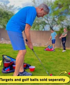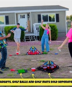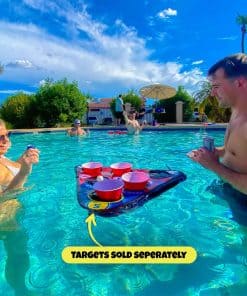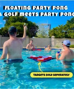 ¡Compatible con tus objetivos SCORE NN� HOLE o SKIP NN’ HOLE, se venden por separado! ¿Juegas mejor con algo de confianza líquida ¡Inicia la fiesta con una rápida ronda de SIP NN� HOLE! Para usar en el agua, saca el poste de soporte y coloca el objetivo triangular flotante en posición horizontal. Luego coloca los vasos en el hoyo y añade tu bebida favorita o agua. Ideal para usar en una piscina pero también se puede jugar en el lago u océano. Los jugadores se turnan para lanzar las pelotas de ping-pong o golf en los vasos. Cuando la bola cae en un vaso, retiras el vaso del objetivo. ¡El equipo que elimina todos los vasos primero gana! 1-4 jugadores. Los vasos y las pelotas de ping-pong flotan. INCLUYE: 3 Pelotas de Ping-Pong, 12x Vasos Rojos y una Bolsa de Viaje.