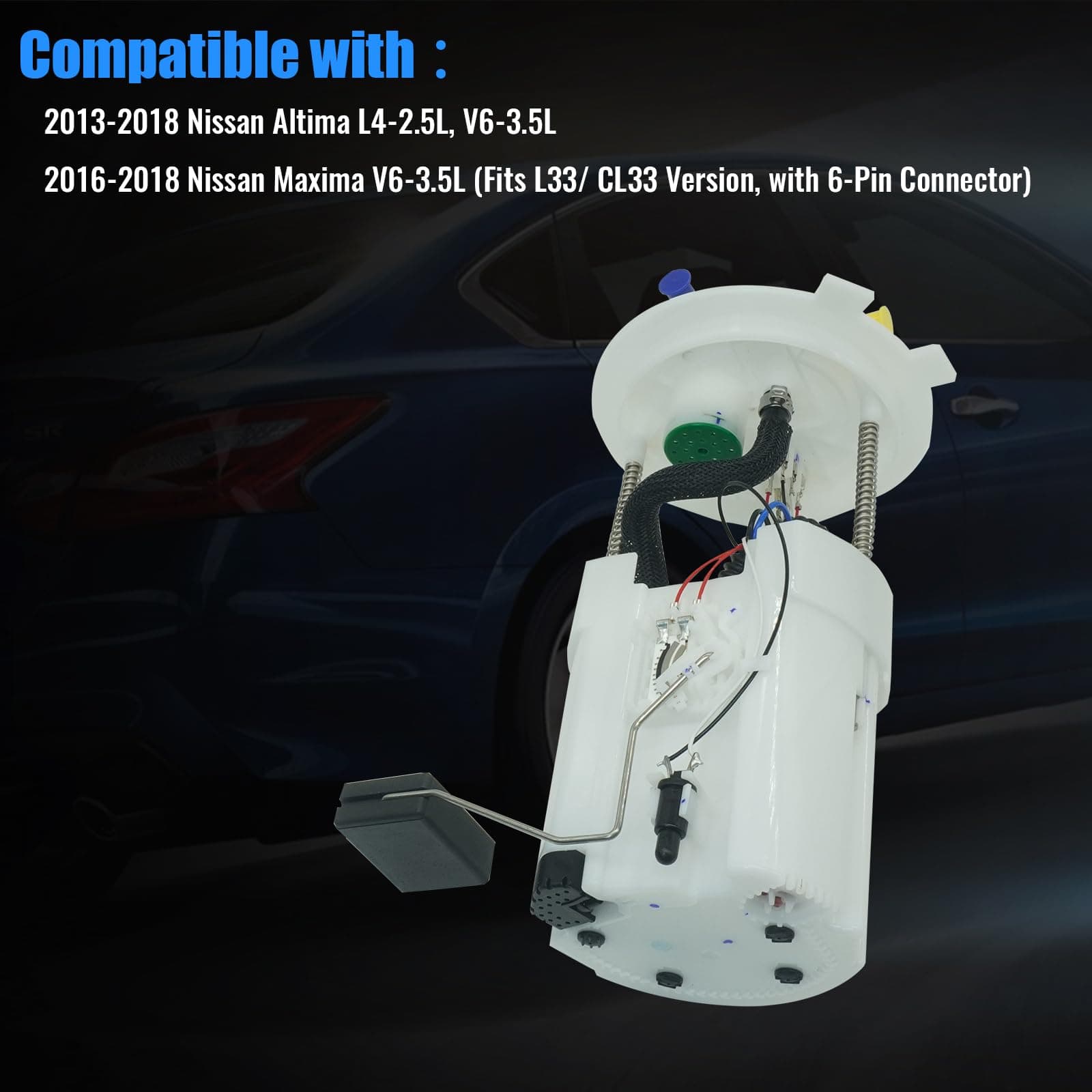 Interchange Number : E9183M, SP4090M, F6194A, FG1772 P77017M, DELFG1772, 170403TA0A, 170403TA0C, 170403TA0B. FITMENT : FG1772 E9183M P77017M Fuel Pump Module Assembly Compatible with 2013-2018 Nissan Altima L4-2.5L, V6-3.5L; Compatible with 2016-2018 Nissan Maxima V6-3.5L (Fits L33/ CL33 Version, with 6-Pin Connector). Advantages :100% brand new in factory packaging. Every FG1772 E9183M P77017M Fuel Pump Module Assembly design must undergo rigorous testing before being considered for production, which ensuring optimal performance and durability. Easy installation & High reliability FG1772 E9183M P77017M Fuel Pump Module Assembly can replace the original parts correctly. You can replace the fuel pump yourself, saving time and hundreds of dollars off dealer prices. Customer Services : OEKITS provides every customer professional consulting all the time, feel free to contact us if you have any questions.