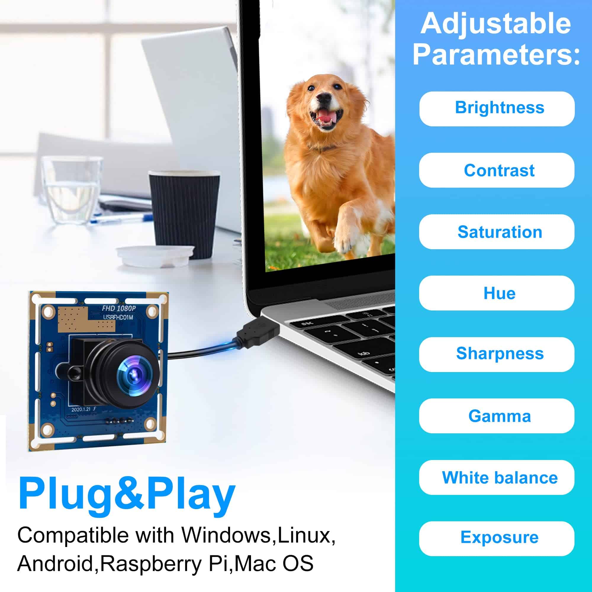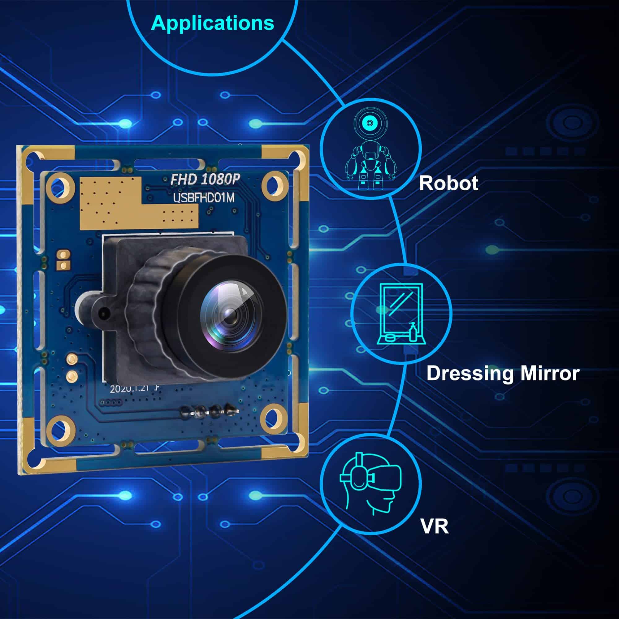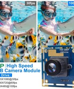 La cámara de placa CMOS USB HD 1080P es ideal para video webcams en el hogar o aplicaciones industriales como sistemas de seguridad, sistemas de video portátiles, video teléfonos, monitoreo de máquinas industriales y juguetes. La cámara USB es ideal para fabricantes de equipos, experimentadores y aficionados. Parámetros: Sensor 1/2.7″ CMOS OV2710. Resolución máxima 1920X1080. Formato de imagen MJPEG o YUY2 opcional / USB Protocal USB2.0 HS / FS. Exposición automática AEC Soporte / Balance de blancos automático AEB Soporte. Rendimiento: 1920 (H) x 1080 (V) píxeles MJPEG 30fps YUY2 6fps. 1280 (H) x 1024 (V) píxeles MJPEG 30fps YUY2 6fps. 1280 (H) x 720 (V) píxeles MJPEG 60fps YUY2 9fps. 1024 (H) x 768 (V) píxeles MJPEG 30fps YUY2 9fps. 800 (H) x 600 (V) píxeles MJPEG 60fps YUY2 21 fps. 640 (H) x 480 (V) píxeles MJPEG 120fps YUY2 30fps. Parámetros ajustables Brillo / Contraste / Saturación de color / Definición / Gamma / WB. Soporte OS «WinXP / Vista / WIN7 / WIN8 / Linux con UVC / Mac-OS X 10.4.8 o superior / Wince con UVC / Android 4.0 o superior». Aplicaciones: Control de coche y barco, equipo electrónico, equipo de campo petrolífero, equipo industrial, monitoreo remoto de sitios, monitoreo ambiental, etc. Utilizado para todo tipo de máquinas como: equipamiento de maquinaria, máquina todo en uno, equipamiento para puntos de venta, máquina expendedora automática, caja de seguridad, computadora portátil, teléfono de video, MED, tableta externa, evaluador, equipo médico, aplicación de campo de la ley, sistema de timbre y botón , sistema de ojo de gato, sistema de seguridad simple, sistema de enseñanza, sistema interactivo, grabadora de datos de automóvil, dispositivo de disparo de video de alta velocidad, sistema de examen, sistema de aprendizaje de conducción, cámara industrial, microscopio biológico, endoscopio, equipo médico auxiliar, etc.