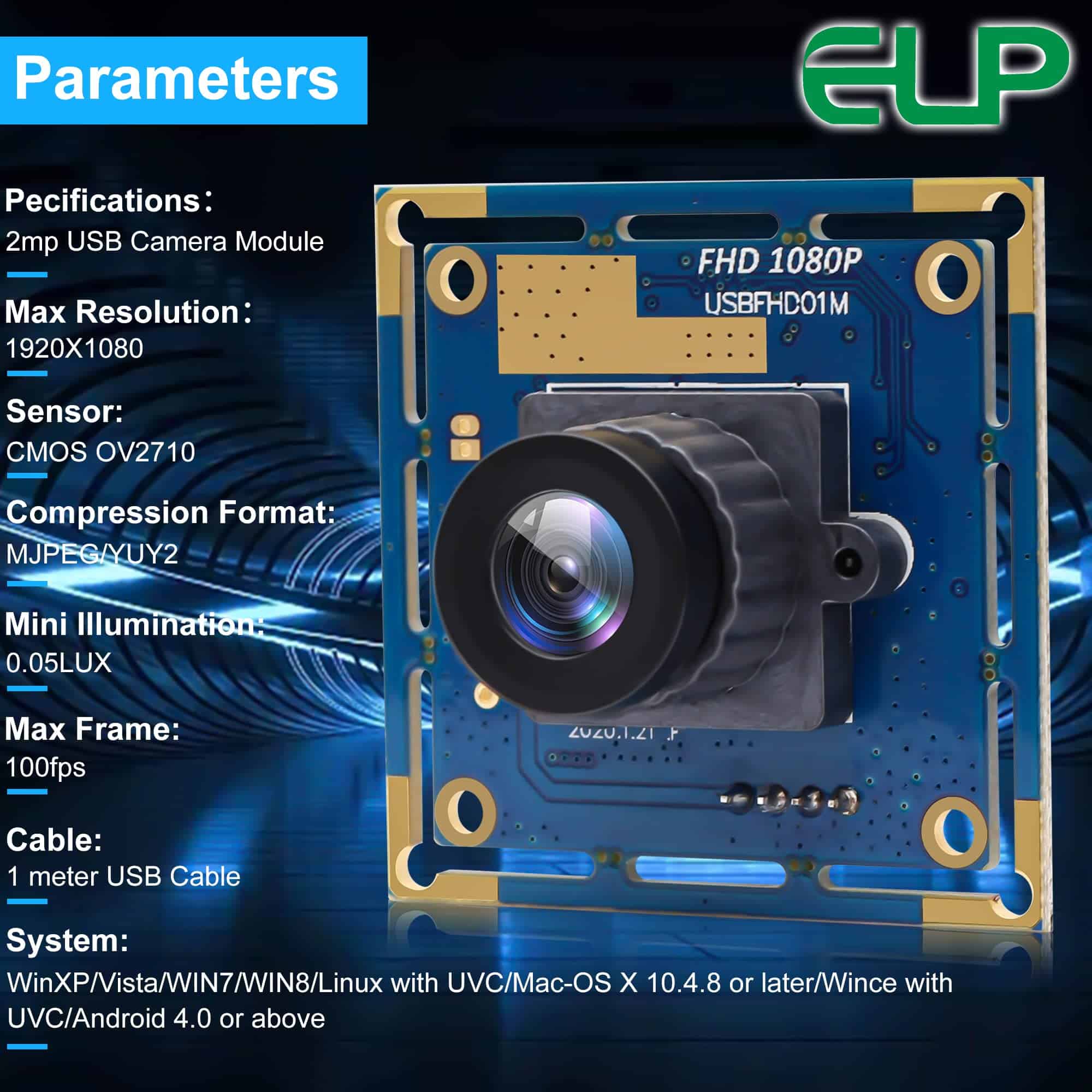 Módulo de cámara de seguridad USB ELP 1080P HD con lente de