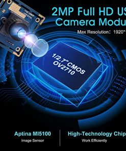 Módulo de cámara USB full hd de 2MP. Sensor de color CMOS omnivisión OV2710 1/2.7 para imágenes de alta calidad. Alta velocidad de cuadro – 640480@120fps, 1280720 @60fps, 19201080 30fps. Con lente HD 2.1mm M12, HFOV aproximadamente 117 grados. Soporte IR CUT y LED IR para imágenes sin distorsión de color de día y noche. Formato de video dual MJPEG/YUY2 opcional. Tamaño mini 38×38/32x32mm para aplicación incrustada. Puerto de conexión USB 2.0 de alta velocidad plug&play adecuado para cualquier PC con interfaz USB 2.0. Baja consumo de energía – ideal para equipos portátiles. Aplicación: Escáner, impresora 3D, vigilancia simple, robot, cajero automático, quiosco, etc. Compatible con UVC – compatible con sistemas Windows, Linux, Android con UVC, compatible con protocolo USB2.0 OTG – Puede ser cámara externa para teléfono móvil, tableta y otros dispositivos que admitan OTG