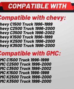 1. Compatibilidad: Compatible con Chevrolet & GMC C1500 1996-1999, C2500 1996-2000, C3500 1996-2002, K1500 1996-1999, K2500 1996-2000, K3500 1996-2000.