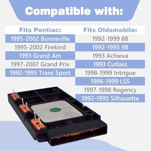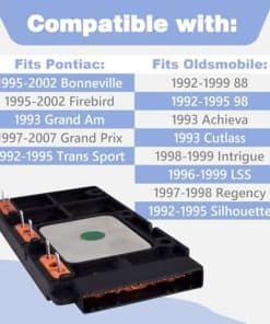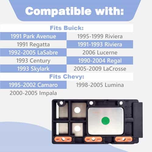 Este módulo de control de encendido es compatible con una amplia gama de vehículos, como Chevy Impala 2000-2005, Camaro 1995-2002, Monte Carlo 1999-2005, Buick Lesabre 1992-2005, Pontiac Grand Prix 1997-2007, Buick Park Avenue 1991-2005, Buick Regal 1990-2004, entre otros. Reemplaza múltiples números de parte, lo que garantiza una perfecta funcionalidad. Con una construcción duradera, ofrece un rendimiento de calidad tanto en funcionamiento como en durabilidad. Asegúrese de verificar la compatibilidad con su vehículo antes de realizar la compra.