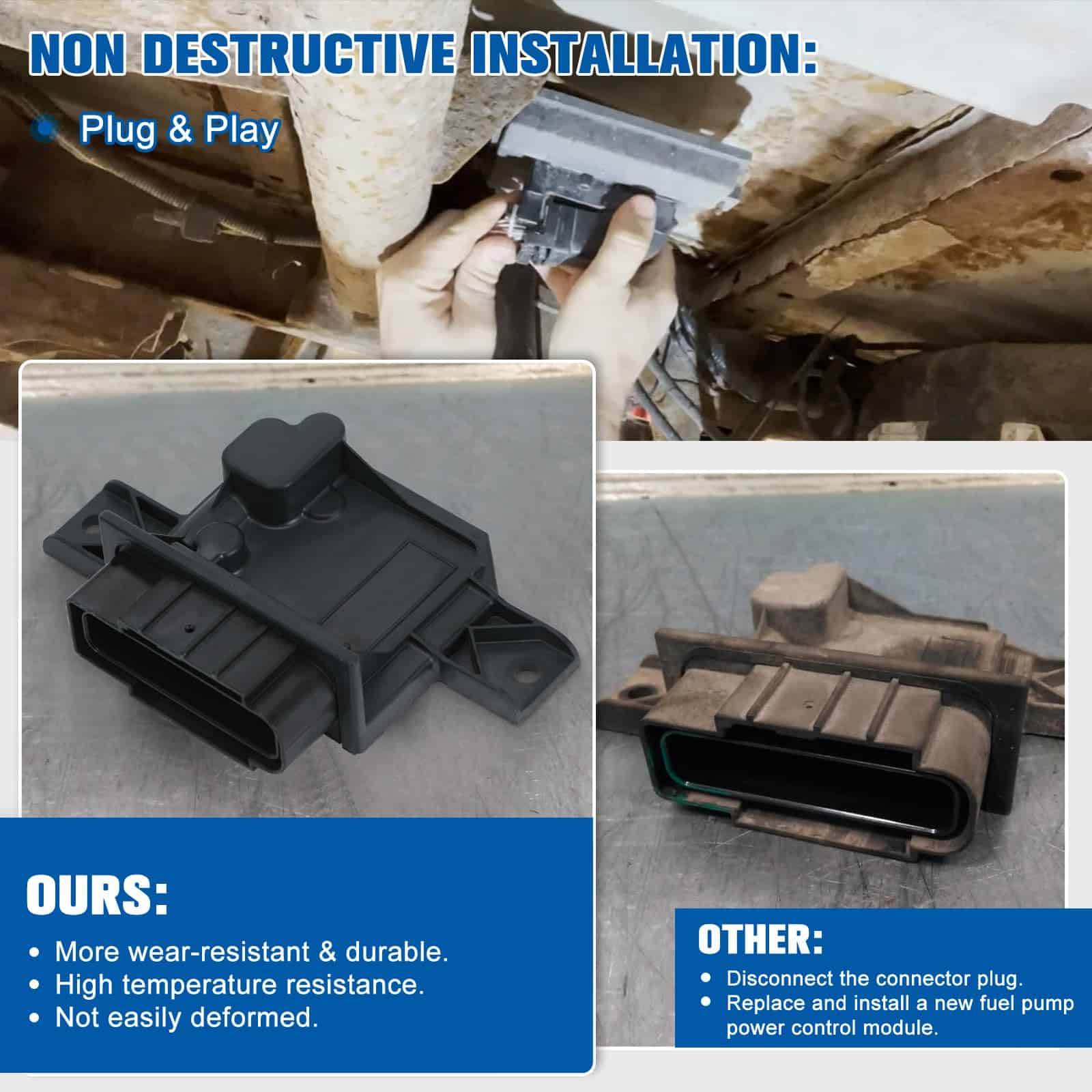 El módulo de control de la bomba de combustible 13565642 13558813 es compatible con una amplia gama de modelos de Chevrolet Silverado y GMC Sierra. Su funcionamiento se basa en aspirar combustible del tanque, presurizarlo y suministrarlo a la línea de suministro, trabajando en conjunto con el regulador de presión de combustible para establecer una presión específica. Está fabricado con metal y PP duradero, lo que garantiza estabilidad térmica y resistencia a la deformación, además de proporcionar una velocidad de transmisión rápida. Su instalación es sencilla, de tipo plug and play, permitiendo el reemplazo directo de módulos de control de bomba de combustible defectuosos, lo que ahorra tiempo y dinero. Además, puede resolver una serie de problemas en el automóvil como el aumento del consumo de combustible, generación de humo negro por el escape, debilidad en la aceleración, zumbido durante la conducción y dificultad para arrancar, entre otros.