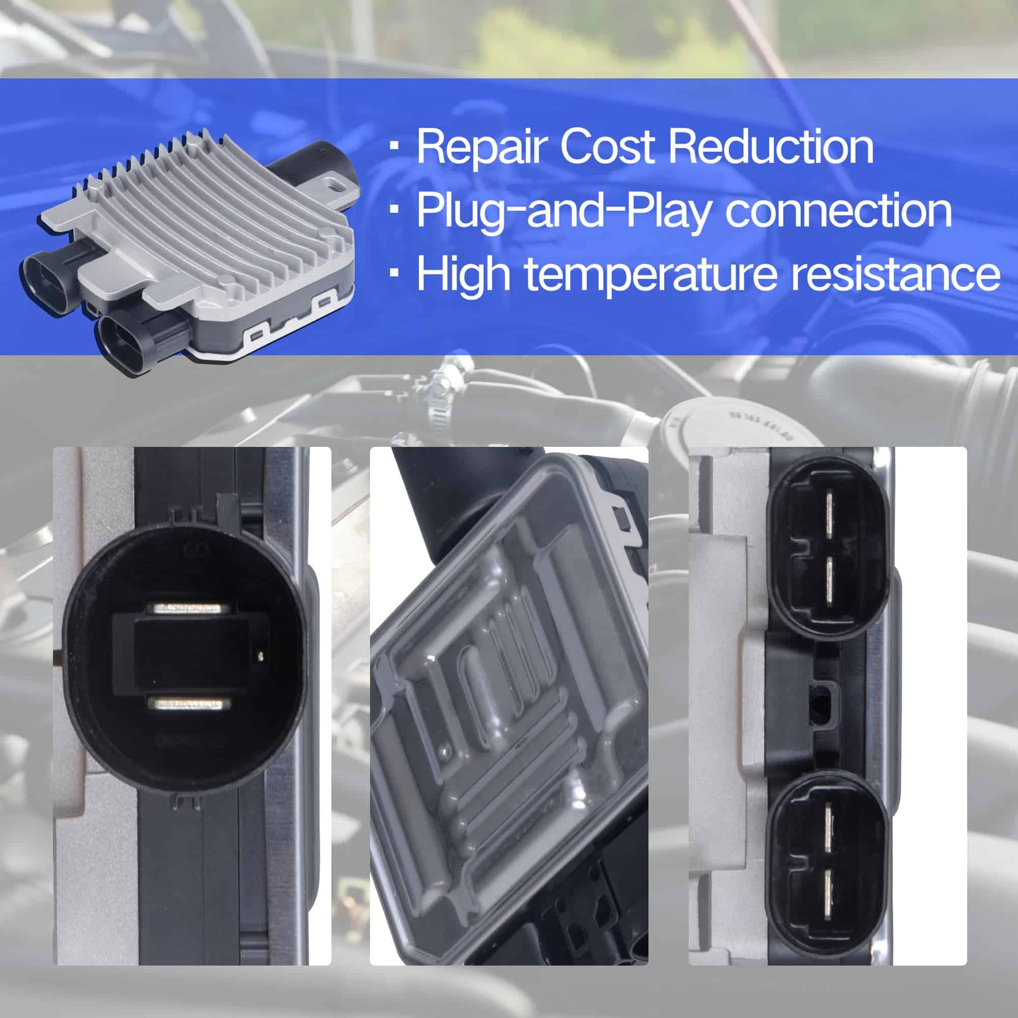 El Módulo de Control del Relé del Ventilador de Refrigeración permite al motor del ventilador tener diversas velocidades para proporcionar el enfriamiento más eficiente en todas las condiciones de funcionamiento del motor. Módulo de Control del Ventilador de Refrigeración del Motor AdvanEX que controla la velocidad del ventilador de manera precisa para minimizar la pérdida de energía y maximizar la economía de combustible.