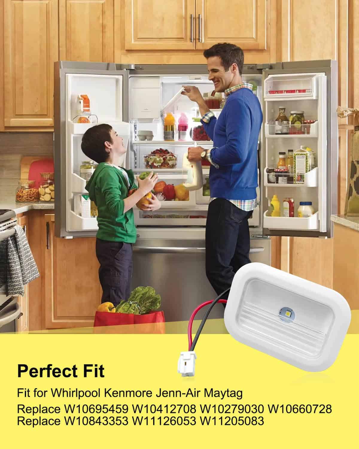 1. Perfecto Ajuste: El módulo de luz LED para refrigerador es perfectamente compatible con Whirlpool Kenmore Jenn-Air Maytag, sustituye directamente a los modelos W10695459 W10412708 W10279030 W10660728 W10843353 W11126053 W11205083, por favor consulte la página de detalles para conocer los modelos específicos.