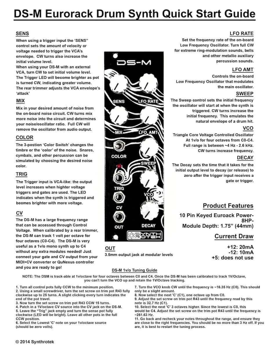 El DS-M (Módulo de Síntesis de Batería) es un sintetizador de batería analógico complejo, modificable, 100% basado en el Coron DS-8 y cuidadosamente empaquetado en un módulo de 8hp.