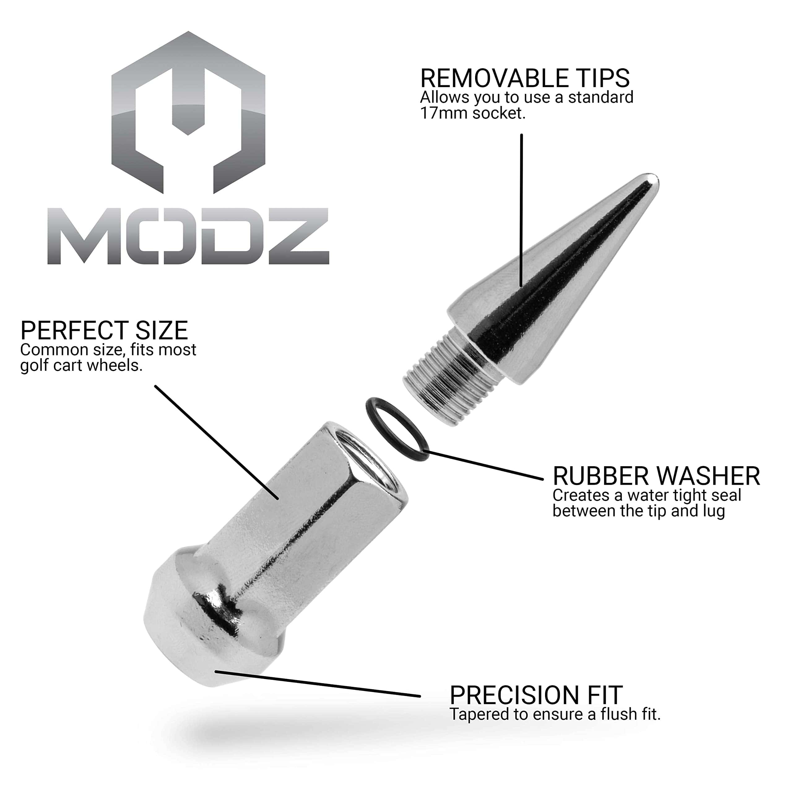 MODZ Golf Cart Espárragos Cromados – Juego de 16 para