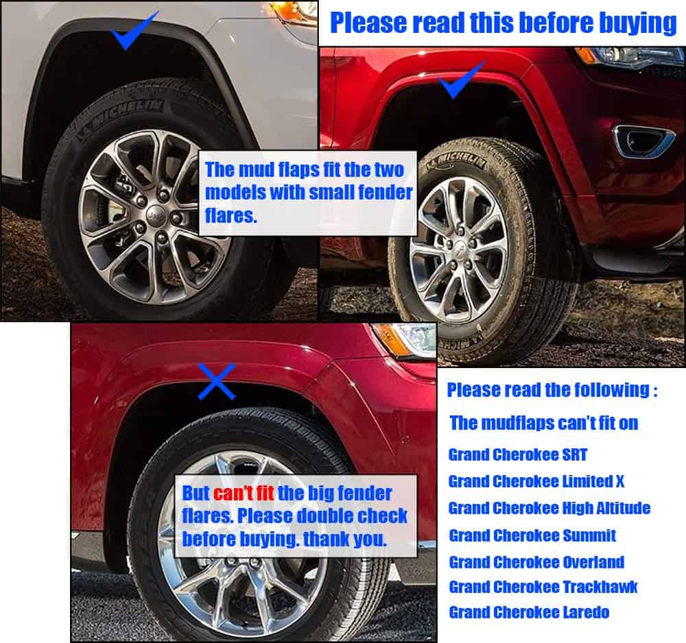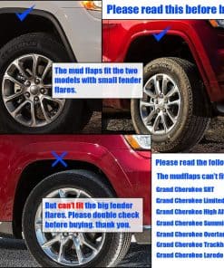 1) Juego completo de 4 piezas de guardabarros con todos los herrajes necesarios e instrucciones de instalación. 2) Proporciona protección para el cuerpo del automóvil, reduce la salpicadura de lodo y evita que los escombros voladores en la carretera rayen el automóvil. 3) ¡Mantendrá tu auto más limpio y hermoso! 4) Compatible con Jeep Grand Cherokee 2011-2020, por favor verifica la descripción del artículo