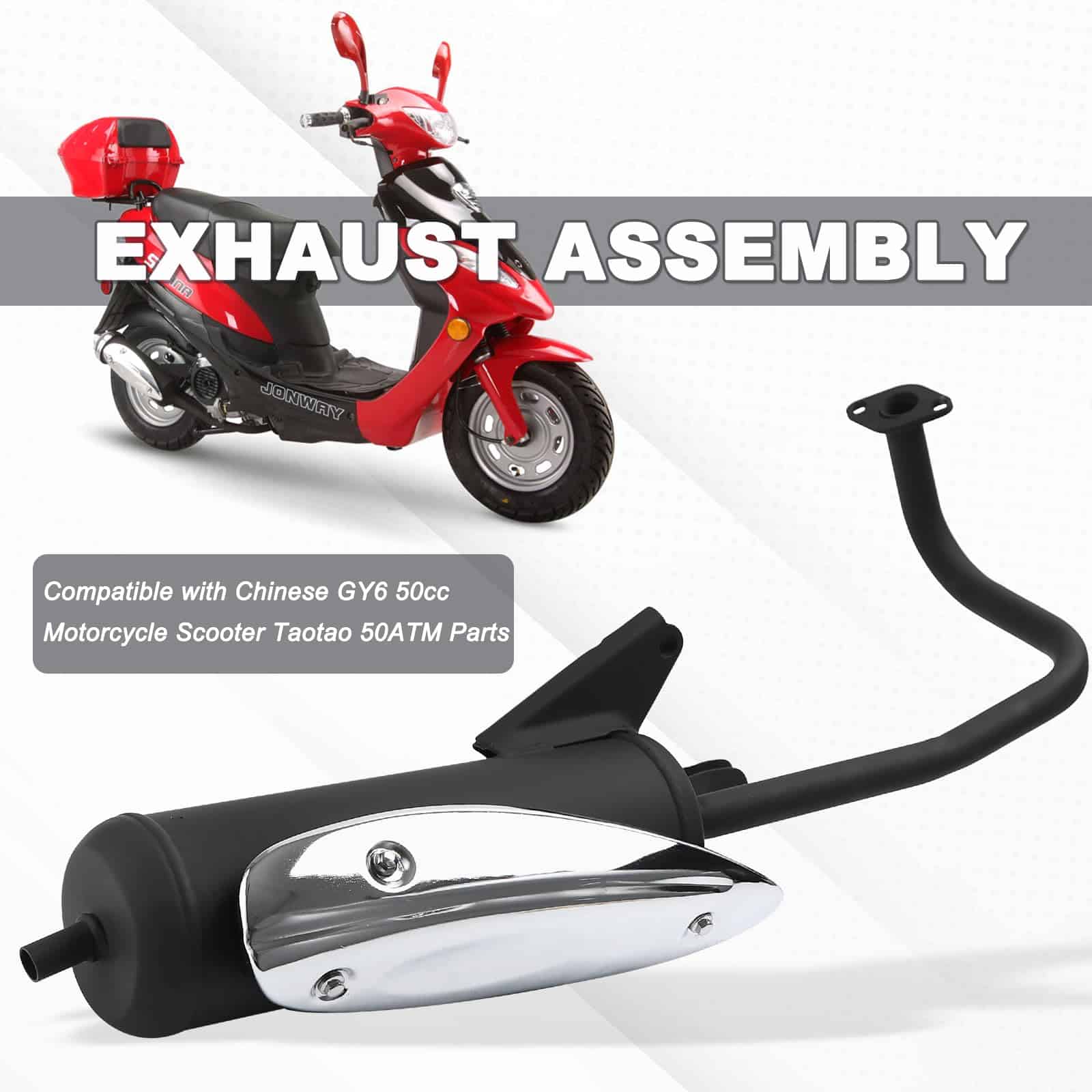 Mofle de escape Mokuo GY6 50cc ensamblado de material