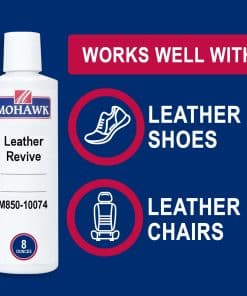 Mohawk Leather Revive es un producto especializado diseñado para revitalizar cuero anilino, de revestimiento, pigmentado y pull-up. Con el tiempo, el efecto pull-up aplicado por las curtidurías se disminuye con el uso, pueden surgir rasguños en la superficie y el color en áreas de uso frecuente puede aclararse. Trate su tapicería con el mismo tipo de tratamiento de cuero aplicado por máquinas en la curtiduría. Aplíquelo en sus zapatos de cuero, sillas de cuero, sofás de cuero y más. Es fácil de usar; simplemente agite bien la botella, agregue el tratamiento de reparación de arañazos de cuero a una esponja o paño libre de pelusa, luego aplique en movimientos circulares y deje secar. Puede ser necesario una segunda aplicación. Viene en una botella de 8 onzas, lo que lo convierte en una excelente adición a su caja de herramientas para otros proyectos de mejoras para el hogar y reparación de cuero. No lo use en nobuck o ante y siempre realice una prueba en una pequeña área.