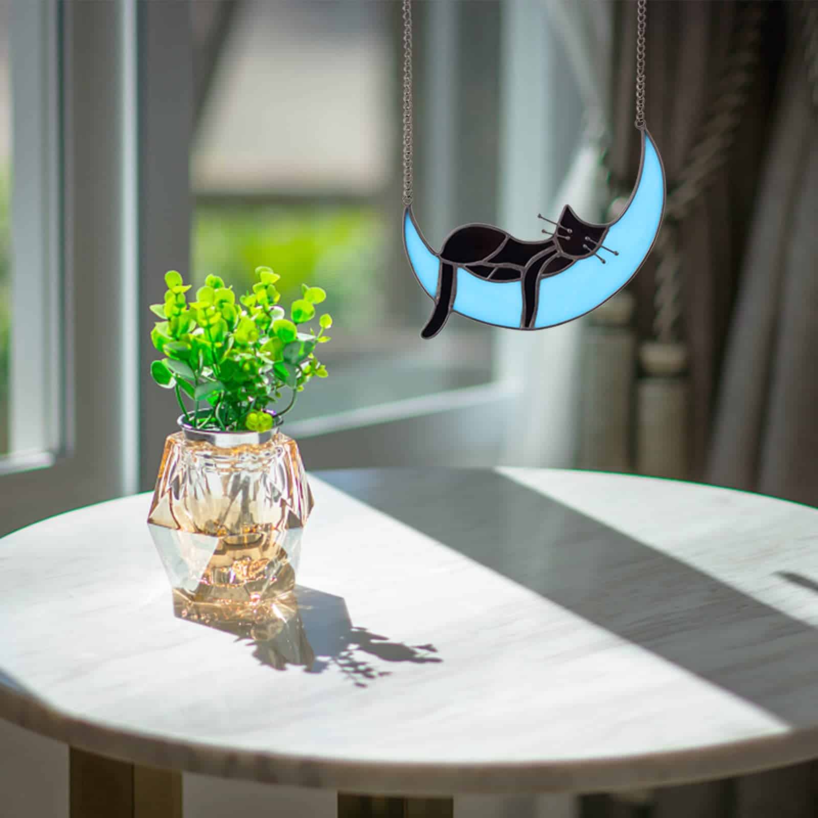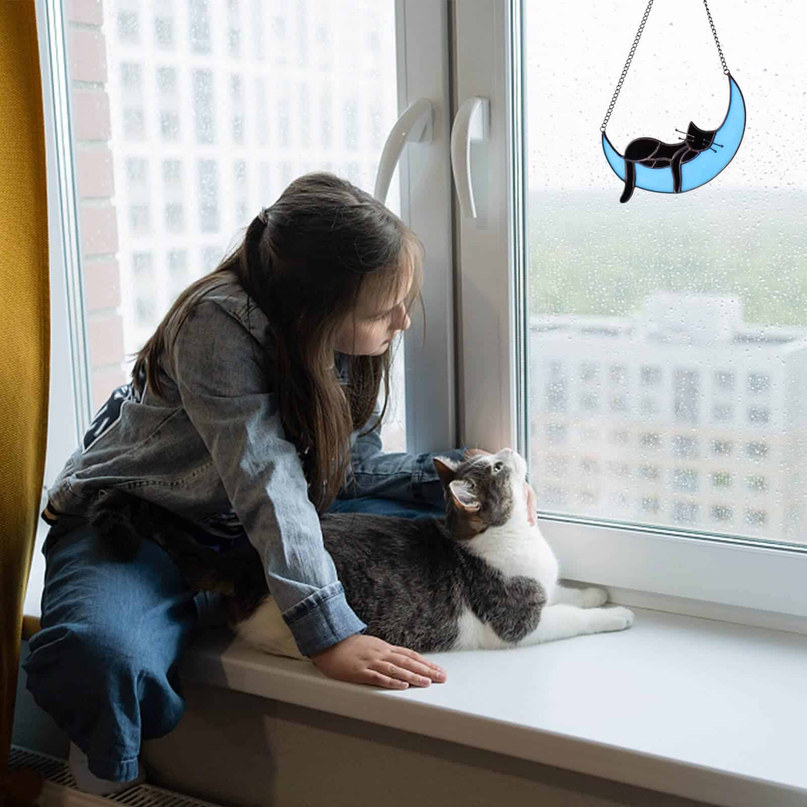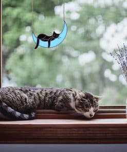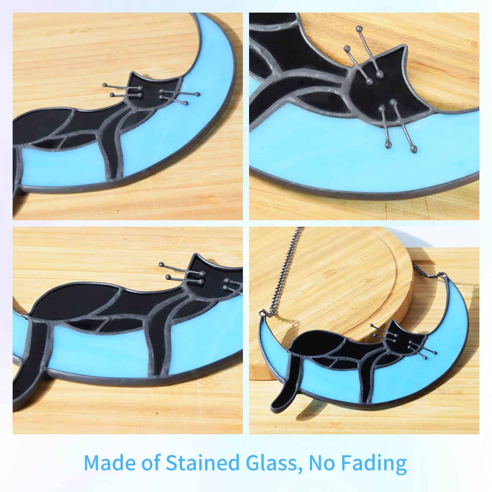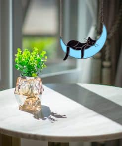 Feature: Perder a una mascota querida debe ser extremadamente doloroso, pero nuestro adorno de recuerdo de gato por pérdida de mascota puede brindar consuelo y curación a los dueños de mascotas. El regalo memorial de gato es tan digno de un recuerdo profundo como la vista encantadora que las mascotas brindan a sus dueños. «Mira el recuerdo y sabe que siempre estoy contigo» es la mejor frase conmemorativa para las mascotas queridas que cruzaron el puente arcoíris, recordándote de los momentos animados y encantadores con las mascotas. 1. Hecho de vidrio manchado real, el atrapasol de gato durmiendo es resistente al fuego y resistente al color. 2. Regalo de simpatía perfecto para la pérdida de un gato, en memoria del gato cuando las mascotas queridas fallecieron. 3. Regalos ideales para mujeres amantes de gatos y para regalos de cumpleaños. Especificaciones: Material: Vidrio manchado Tamaño: 6.29″ x 3.97 » Color: Negro, Azul Paquete incluido: 1 x adorno de gato negro