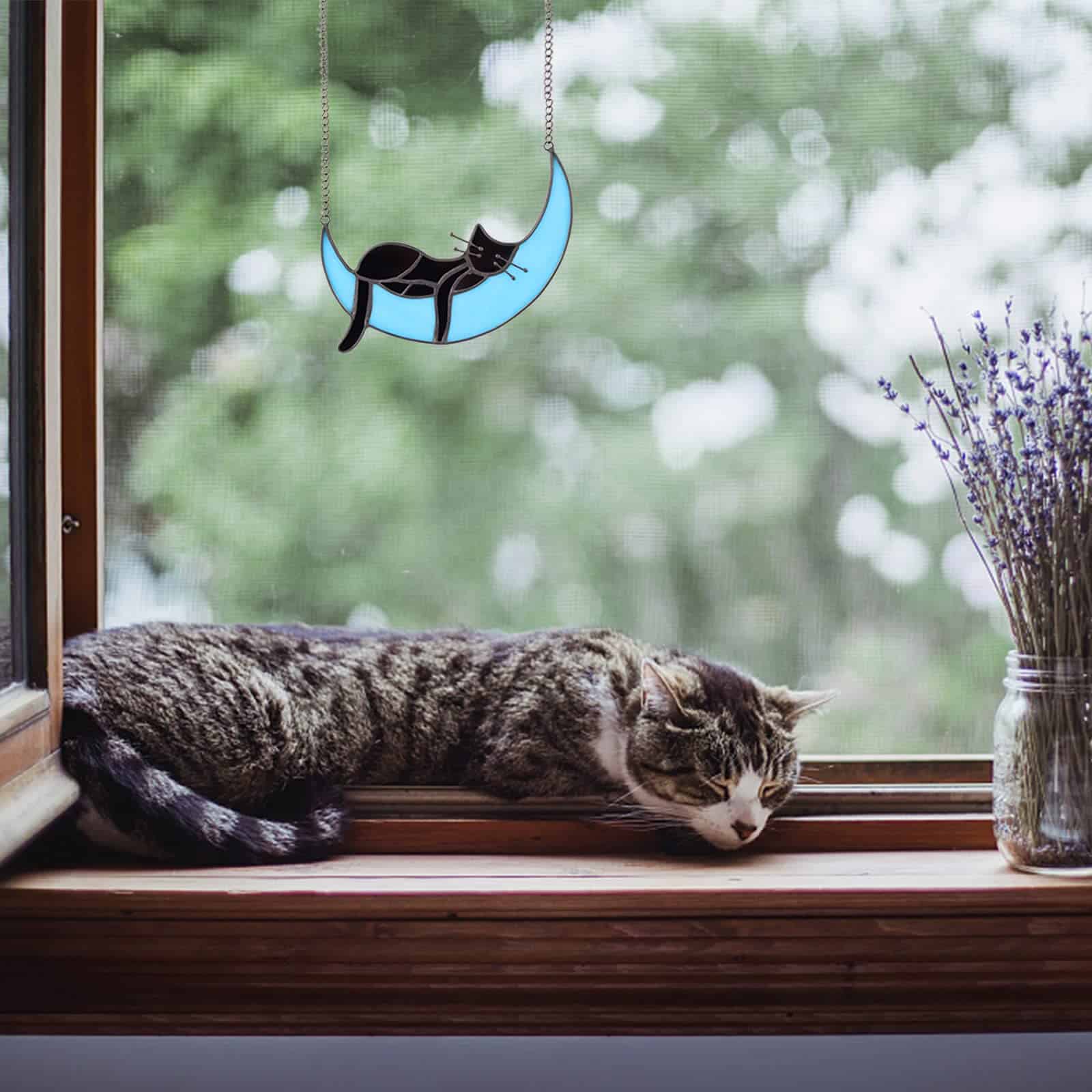 Mojoursa Gato Durmiendo Negro en Luna Azul Atrapasol,