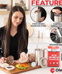 La tapa innovadora con un resorte de compresión resistente garantiza que la carne tenga un sabor y una textura inigualables. Además, este fabricante de embutidos viene con un termómetro de cocina de gran tamaño, 10 bolsas de cocción y un libro de recetas para que sea aún más fácil de usar y disfrutar.