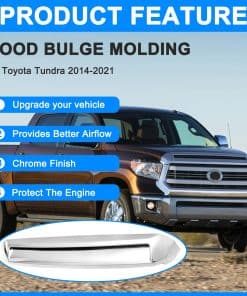 Moldura cromada de rejilla frontal superior de capó para Toyota Tundra 2014-2021. Hecho de plástico ABS resistente a la corrosión. Protege el motor de daños causados por objetos en la carretera. Fácil instalación sin necesidad de modificaciones. Mejora el flujo de aire al radiador para mantener el motor fresco. Se recomienda la instalación profesional.