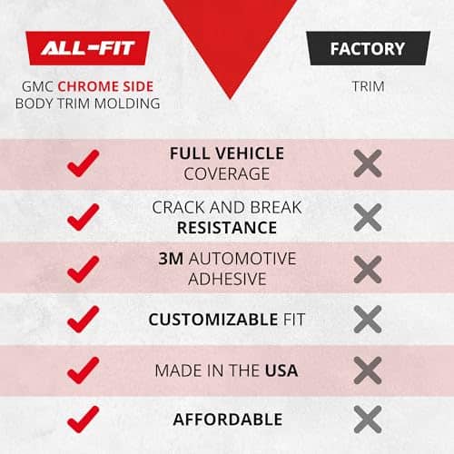 Este kit de moldura lateral para automóvil All-Fit Automotive es el complemento perfecto para tu Chevy truck, GMC Pickup o Suburban modelo 1973-87. Con un ajuste preciso y un acabado cromado de alta calidad, esta moldura proporciona protección y estilo a partes iguales. Su longitud generosa de 26 pies garantiza una cobertura completa de tu vehículo, asegurando una protección óptima contra abolladuras y rasguños en la carrocería. Además, su instalación es fácil y sin complicaciones gracias a la cinta automotriz 3M incluida. Fabricado en los EE. UU. con los estándares más altos de calidad, este kit de moldura lateral cromado es una opción confiable y duradera para mejorar la apariencia de tu vehículo.