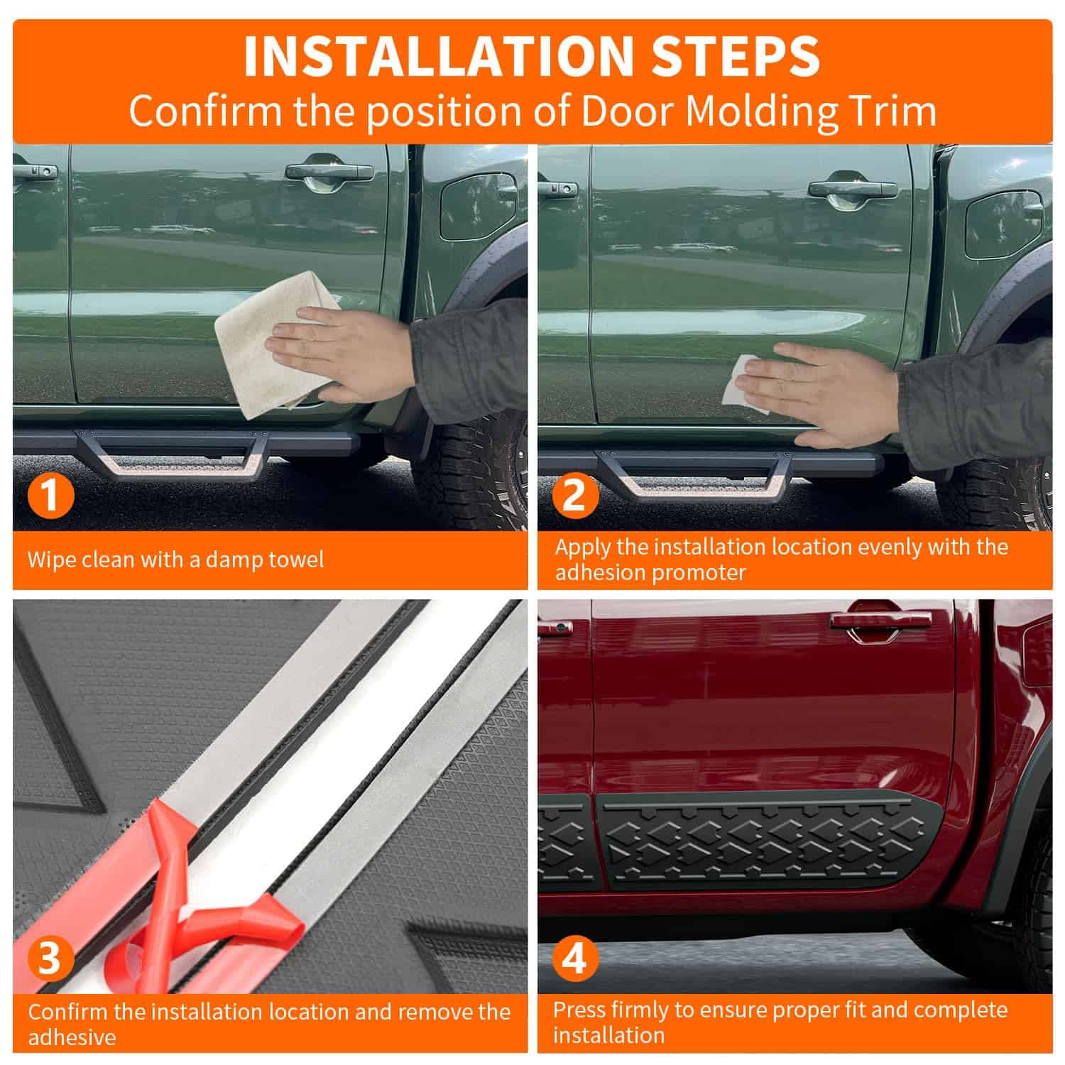 La moldura para puerta compatible con Nissan Frontier es una excelente adición para su vehículo. Con un ajuste exclusivo para los modelos de Cabina Doble (4 puertas) de 2022-2025, esta moldura lateral del cuerpo está diseñada con atención al detalle para una apariencia perfecta. Fabricado con material TPE de alta calidad, este accesorio es resistente y duradero, lo que le permite soportar todas las condiciones climáticas, desde fuertes lluvias hasta días de nieve intensa. Su patrón tridimensional desigual le da a su automóvil un toque de moda, al tiempo que brinda protección contra colisiones y arañazos. La instalación es rápida y sencilla, ya que la moldura tiene adhesivo en la parte trasera, sin necesidad de cortes adicionales. Con nuestro servicio postventa satisfactorio, puede comprar con confianza sabiendo que estaremos aquí para ayudarlo en caso de cualquier problema. ¡Obtenga su moldura para puerta compatible con Nissan Frontier hoy mismo y mantenga su vehículo protegido con estilo!