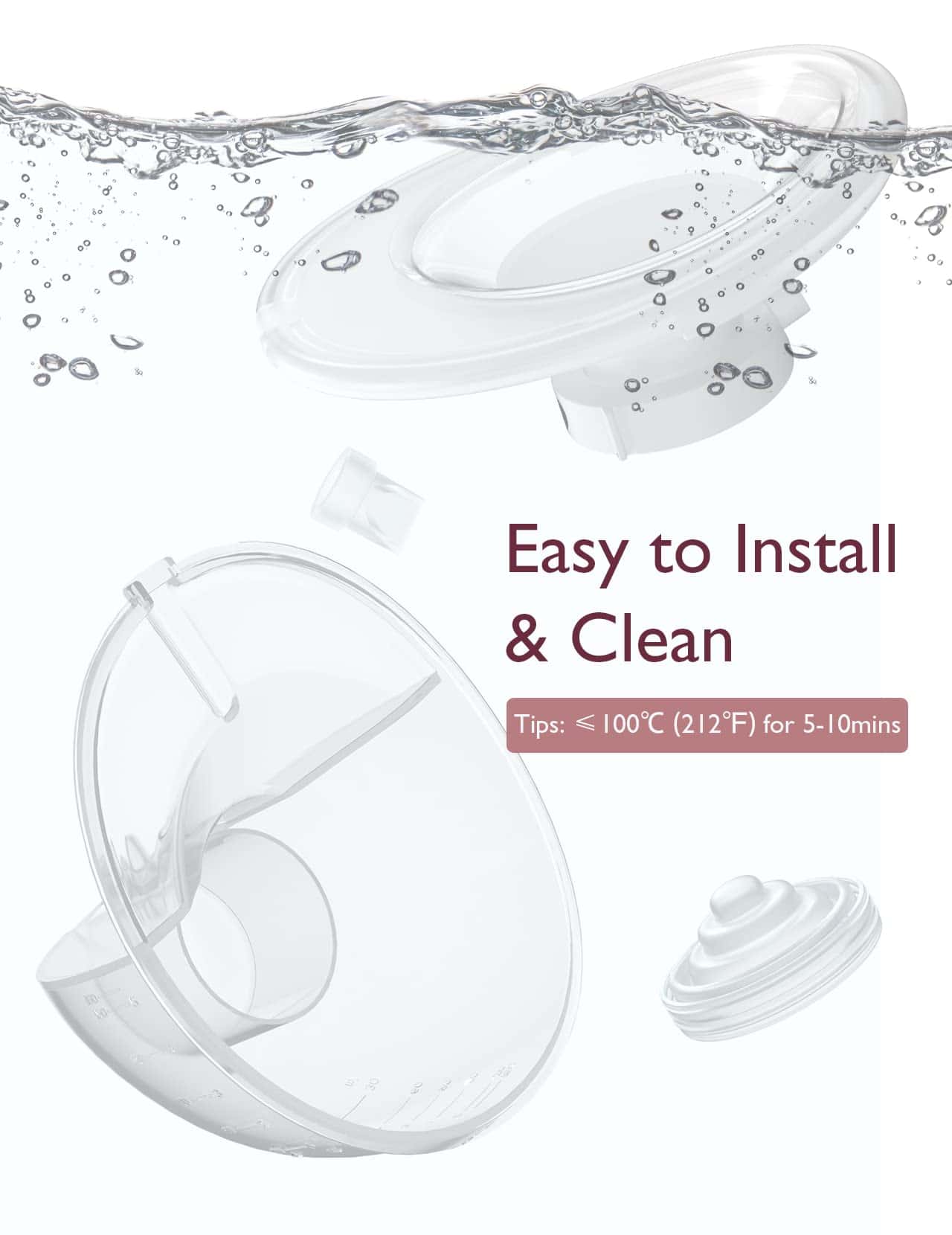 Lave las piezas de la bomba Momcozy M5 después de cada uso con agua tibia y jabón y enjuague bien. Por favor, limpie con una temperatura de 100 212 durante 5-10 minutos.