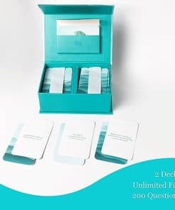 Sumérgete en Moments Under The Sea creado por Najla Alfardan, una emprendedora visionaria y defensora del bienestar de Qatar. Inspirada por el profundo impacto de las historias en forjar conexiones humanas, Najla se embarcó en una misión para crear un juego que trascienda las interacciones superficiales y se adentre en el mar de experiencias compartidas. Najla Alfardan cree que dentro de cada uno de nosotros hay un vasto mar de historias narrativas que definen nuestras identidades, moldean nuestras creencias y nos conectan con otros de manera profunda. Dentro de Moments Under The Sea hay 200 Cartas de Preguntas que invitan a la reflexión distribuidas en dos barajas meticulosamente diseñadas, junto con 10 cartas de Rescue Circle para esos momentos en los que se necesita orientación o apoyo. Cada carta lleva una pregunta elaborada para despertar la introspección y encender un diálogo significativo. Desde indagaciones como «¿Eres realmente feliz?» hasta estímulos reflexivos como «Si pudieras decir una frase a tu yo más joven, ¿cuál sería?», cada pregunta es un portal hacia una comprensión más profunda y una conexión más sólida. Ya sea que te reúnas con amigos para una noche de conversación sincera o busques fortalecer los lazos con seres queridos, Moments Under The Sea trasciende el típico juego de fiesta, ofreciendo una plataforma donde la vulnerabilidad es acogida y los momentos auténticos son apreciados. No es solo un juego, es una oportunidad para crear recuerdos duraderos y forjar amistades que perduren. Moments Under The Sea es más que un juego, es un regalo de conexión. Compártelo con aquellos a quienes aprecias y emprende un viaje donde cada carta sacada es un paso hacia una comprensión más profunda y una amistad duradera.