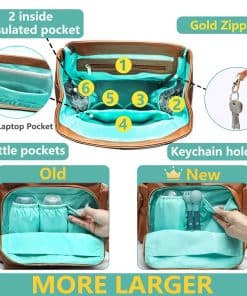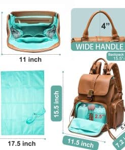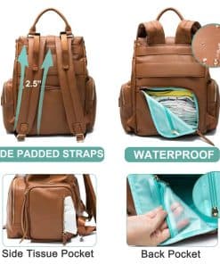 La mochila para pañales MOMINSIDE, suave y elegante, con un diseño clásico y considerado, realmente se destaca entre la multitud! Especificaciones: Material: Exterior–100% Cuero ECO PU Suave, Interior–100% Nylon Impermeable (Libre de PVC, Libre de FTALATOS, Libre de Plomo) Dimensiones: (LxAxH) 10x7x15.5 Pulgadas Bolsillo acolchado para portátil: Adecuado para portátil de 13 pulgadas Longitud de las correas para los hombros: 15.5 a 33 aproximadamente Longitud de las correas para el cochecito: 7.5 (Máx) Peso: 2.74LB. 7 Razones para Elegir la Mochila para Pañales MOMINSIDE –4 Bolsillos Aislados, bolsillo para portátil de 13 pulgadas –Bolsillo húmedo/seco, 1 bolsillo para pañuelos –1 llavero fijo, correas de cochecito integradas –Correa de equipaje que se ajusta a la mayoría de los equipajes –14 bolsillos de almacenamiento separados –Diseño de boca amplia –Correas para hombros acolchadas, cambiador impermeable ¡Organizador de Bolsa de Pañales definitivo sin manos! 4 Bolsillos Aislados–2 bolsillos aislados en la parte delantera y 2 bolsillos aislados en el interior para mantener el agua y la comida a la temperatura deseada. Bolsillo Húmedo/Seco–1 bolsillo trasero con separación húmedo/seco para ropa húmeda o toallitas, te permite acceder al compartimento principal en la parte trasera sin desbloquear la solapa. Bolsillo para Portátil de 13 Pulgadas–El compartimento acolchado para llevar tu portátil a donde vayas. Correa de Equipaje–Puede ajustarse a la mayoría de los mangos de equipajes verticales para llevar sin manos. Correas de Cochecito Integradas–No tienes que buscar ni siquiera recordar empacar. Fácil de colocar en el cochecito. 1 Llavero Fijo–Anillo de llavero fijo para almacenar tus llaves, fácil de encontrar, y nunca preocuparte por perderlas. Cambiador Impermeable Impermeable, los derrames se pueden limpiar fácilmente.