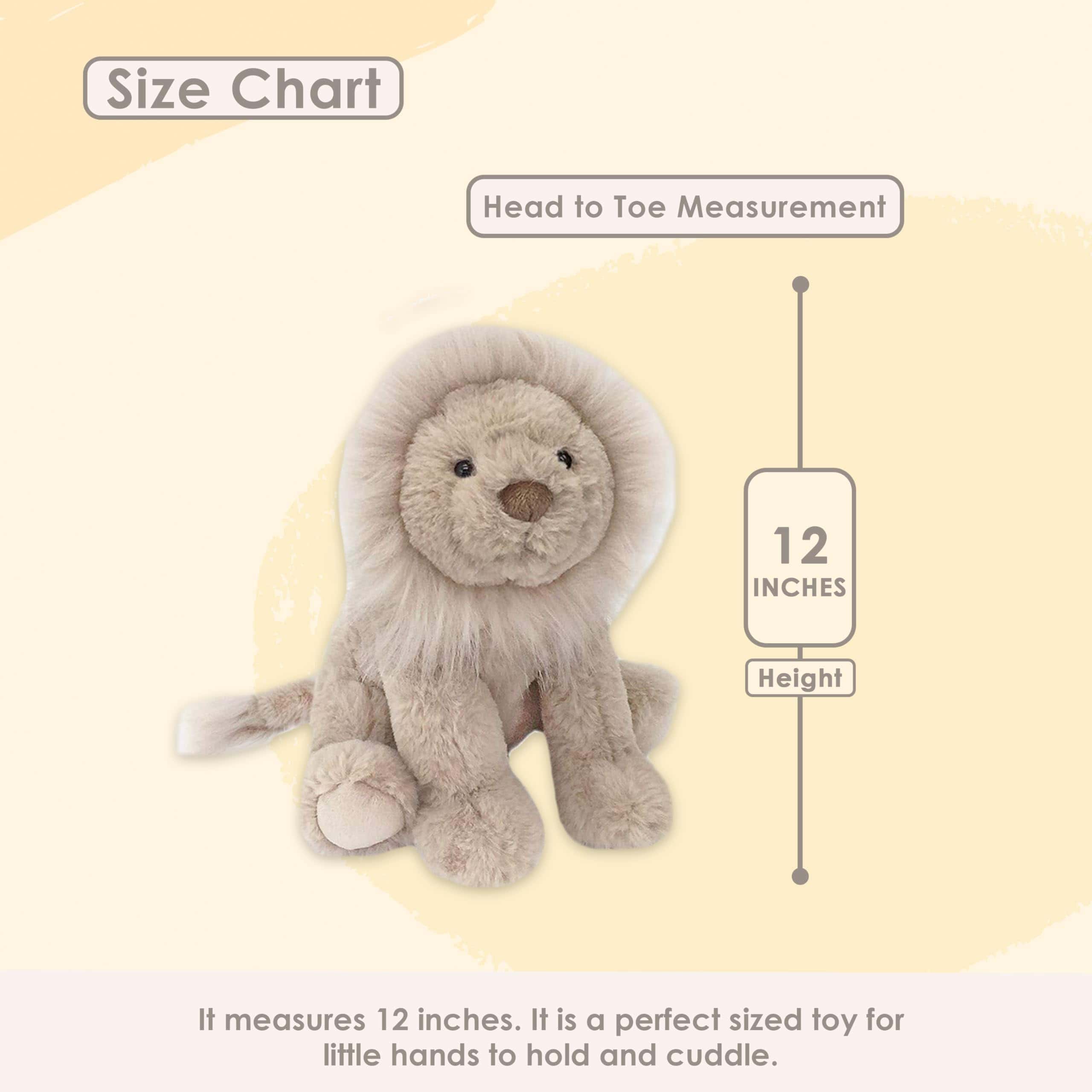 Es un León de Peluche de 10 pulgadas con una hermosa melena y un cuerpo suave y flexible de color natural que está exquisitamente construido y agradable al tacto.