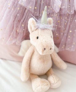 1. PELUCHE SUAVE Presentando a Luna, el juguete de peluche unicornio, una mezcla fascinante de hada y encanto de unicornio que transforma cualquier guardería en un refugio de infinita imaginación. Luna cautiva con su pelaje rosa pálido etéreo, alas adornadas con gracia de color crema y un cuerno que brilla con el atractivo dorado de la magia.