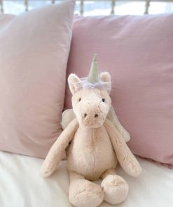 Presentando a Luna, el juguete de peluche unicornio, una mezcla fascinante de hada y encanto de unicornio que transforma cualquier guardería en un refugio de infinita imaginación. Luna cautiva con su pelaje rosa pálido etéreo, alas adornadas con gracia de color crema y un cuerno que brilla con el atractivo dorado de la magia. Este unicornio de peluche caprichoso no solo es suave; es un deleite sensorial, invitando a momentos infinitos de confort acogedor. Elaborada con el máximo cuidado por Mon Ami, Luna es la compañera perfecta para recién nacidos y niños pequeños, ofreciendo no solo suavidad táctil sino también un toque de magia que despierta la maravilla en los corazones jóvenes. Regala lo extraordinario con Luna un juguete de peluche que trasciende lo ordinario. Y hay más: la magia de Luna no se detiene con su apariencia. Participa en un ritual encantador frotando suavemente el cuerno de Luna, y observa el despliegue de un encanto que agrega una capa adicional de maravilla al tiempo de juego. Luna no es solo un juguete; es una invitación a un mundo donde la imaginación no tiene límites un mundo donde cada caricia es una aventura mágica. Embárcate en este viaje con Luna, donde cada abrazo es un paso hacia un reino de posibilidades infinitas.