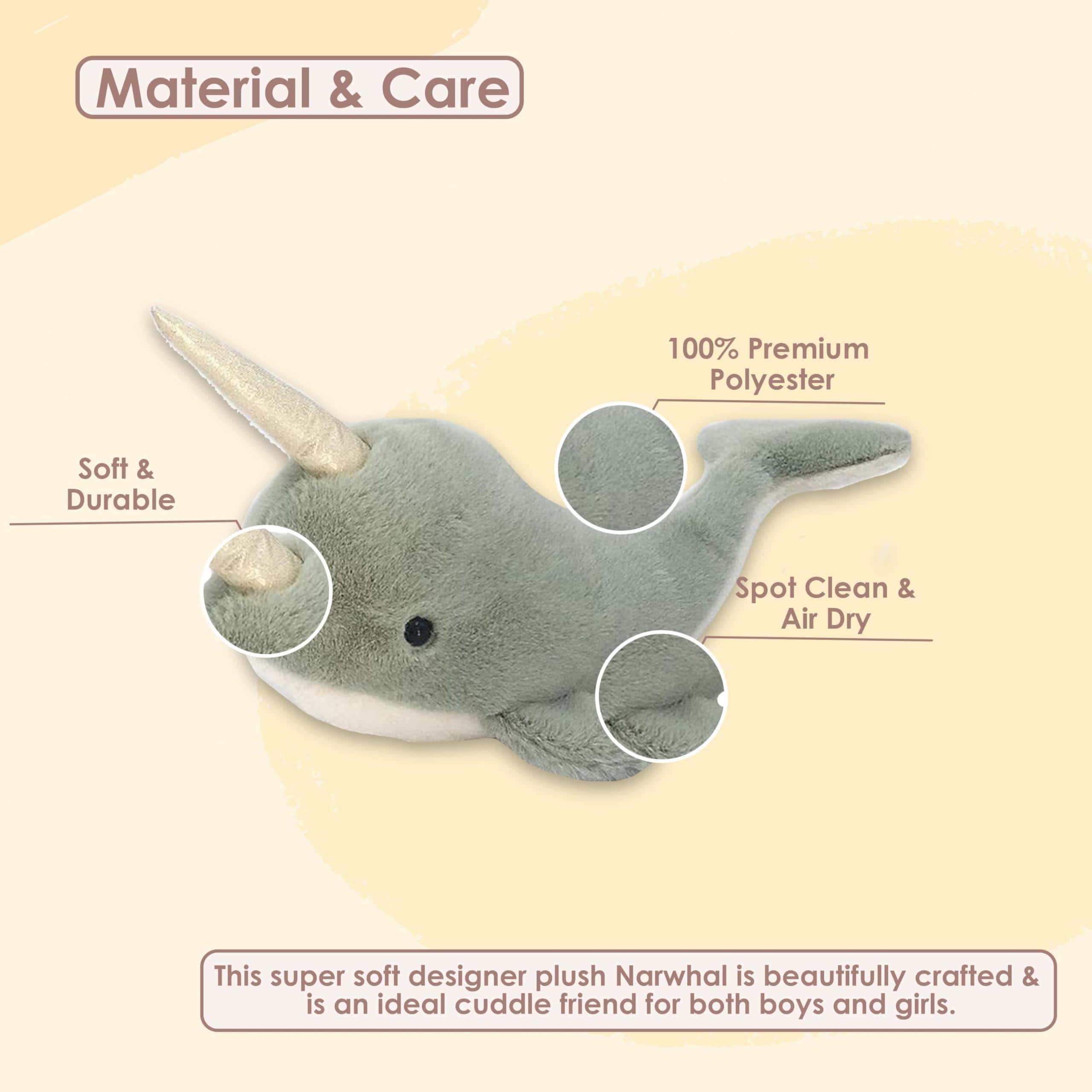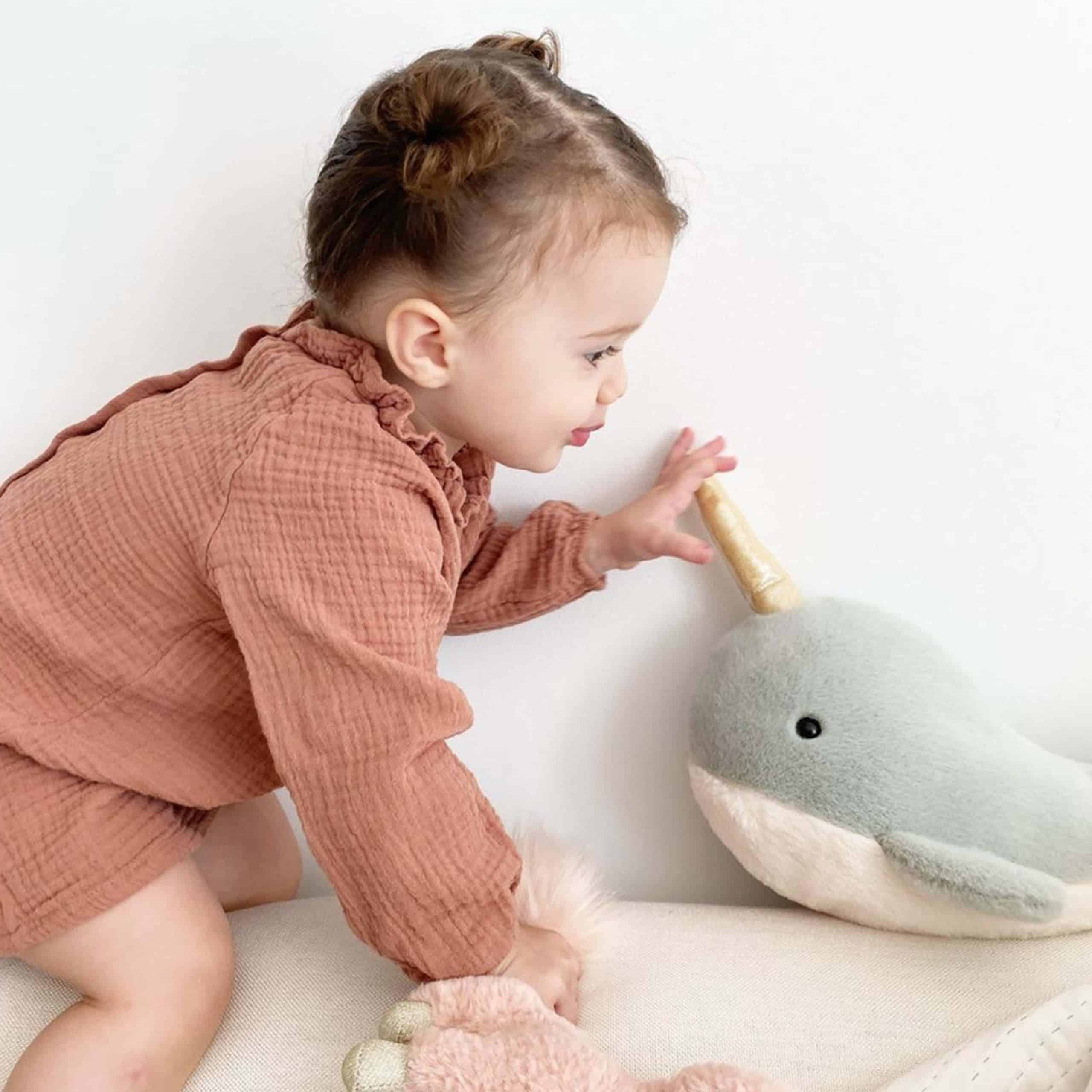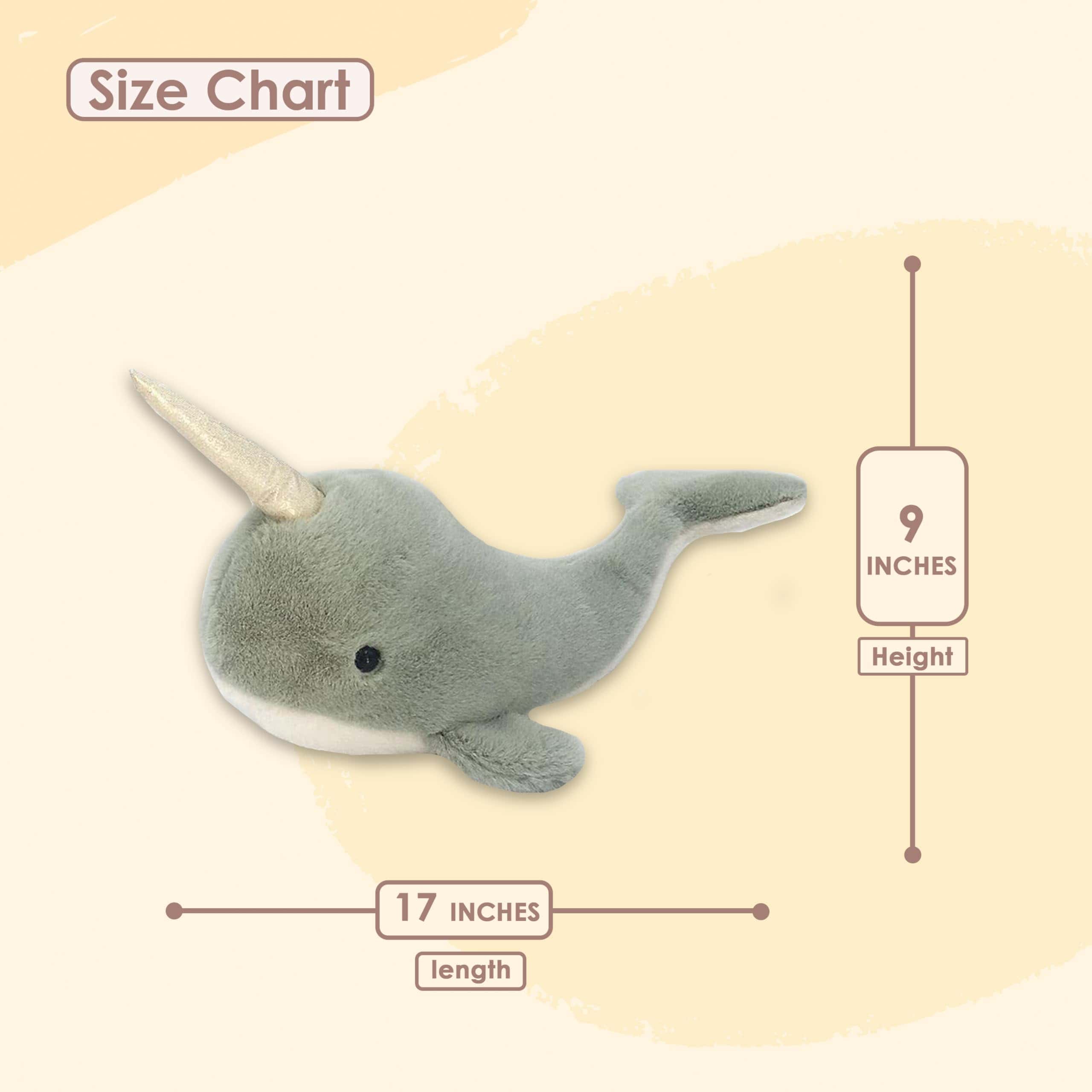Este narval exquisitamente tallado es el compañero ideal para abrazarse. Con su pelaje verde mar y cuerno brillante, es casi imposible distinguirlo del océano. ¡Las personalidades de cada personaje son distintas!